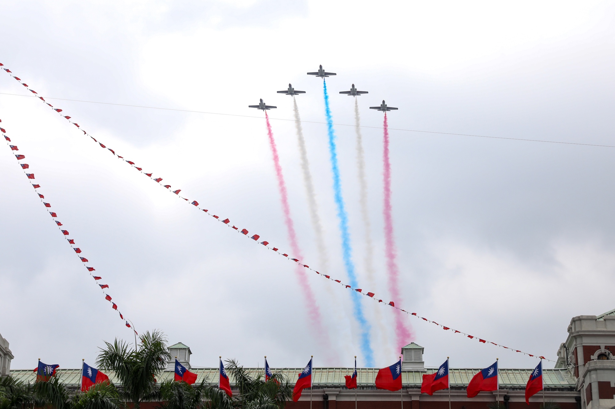 台湾AT-3先进喷气式教练机在2022年10月10日台北的国庆庆典上。