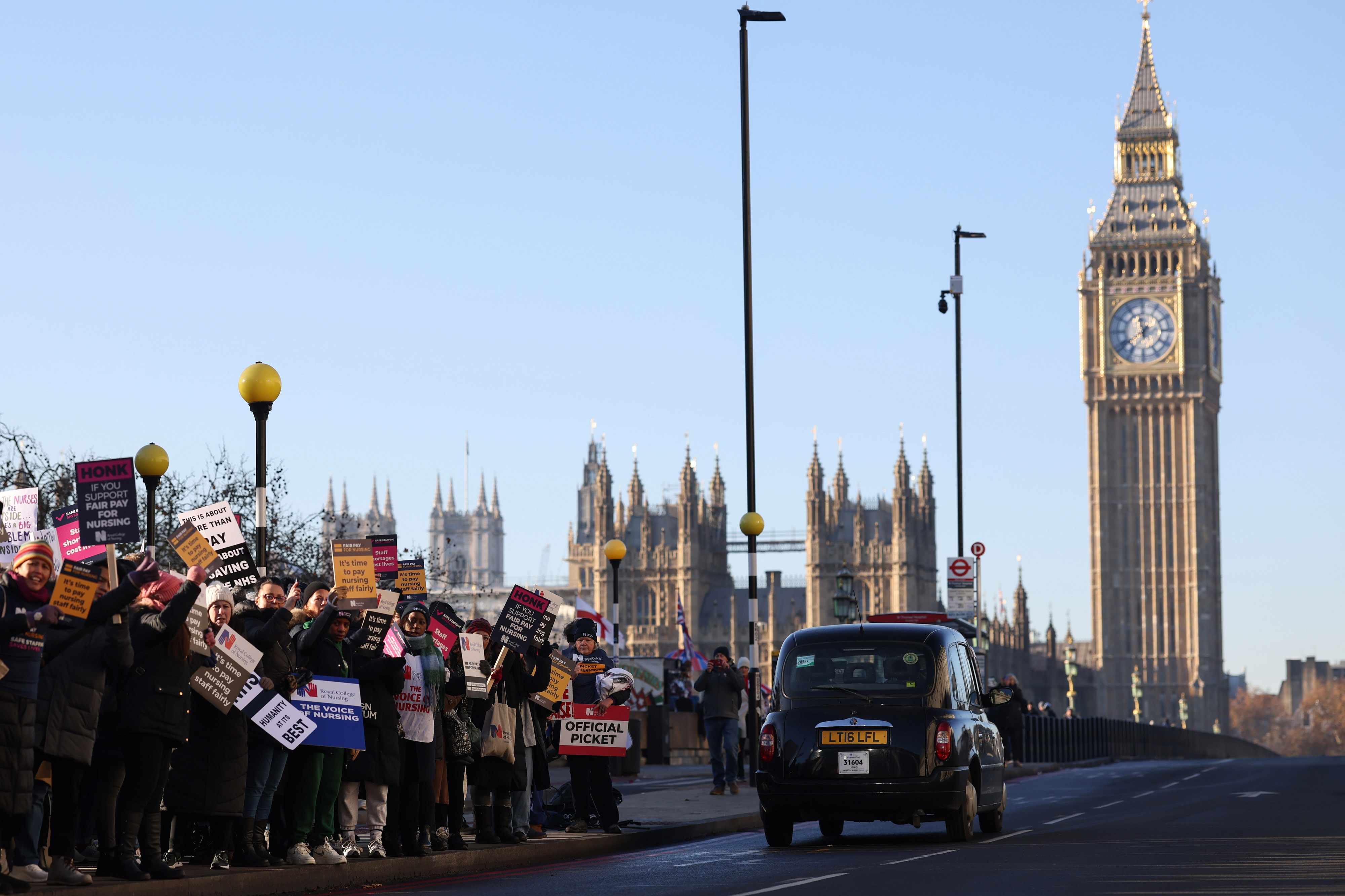 英国的工会面临比大多数其他欧洲国家更严格的罢工规定。劳工团体需要跨越更多障碍才能下令罢工,并且被禁止进行二次行动——即工人因同情另一家雇主的员工而罢工。在法国和德国,罢工权利受到法律保障。爱丁堡大学劳动法专家大卫·卡布雷利表示,英国的罢工行为自动属于非法,除非工会进行投票,一半的成员投票并且大多数支持罢工。英国工会仍然受到他们认为公众对他们事业和对公共服务投资需求的同情所支持。根据YouGov和Ipsos的民意调查,约三分之二的受访者一直支持护士的罢工。Ipsos在四月份的一项民意调查中显示,将近一半的公众支持教师的罢工,而只有三分之一反对。