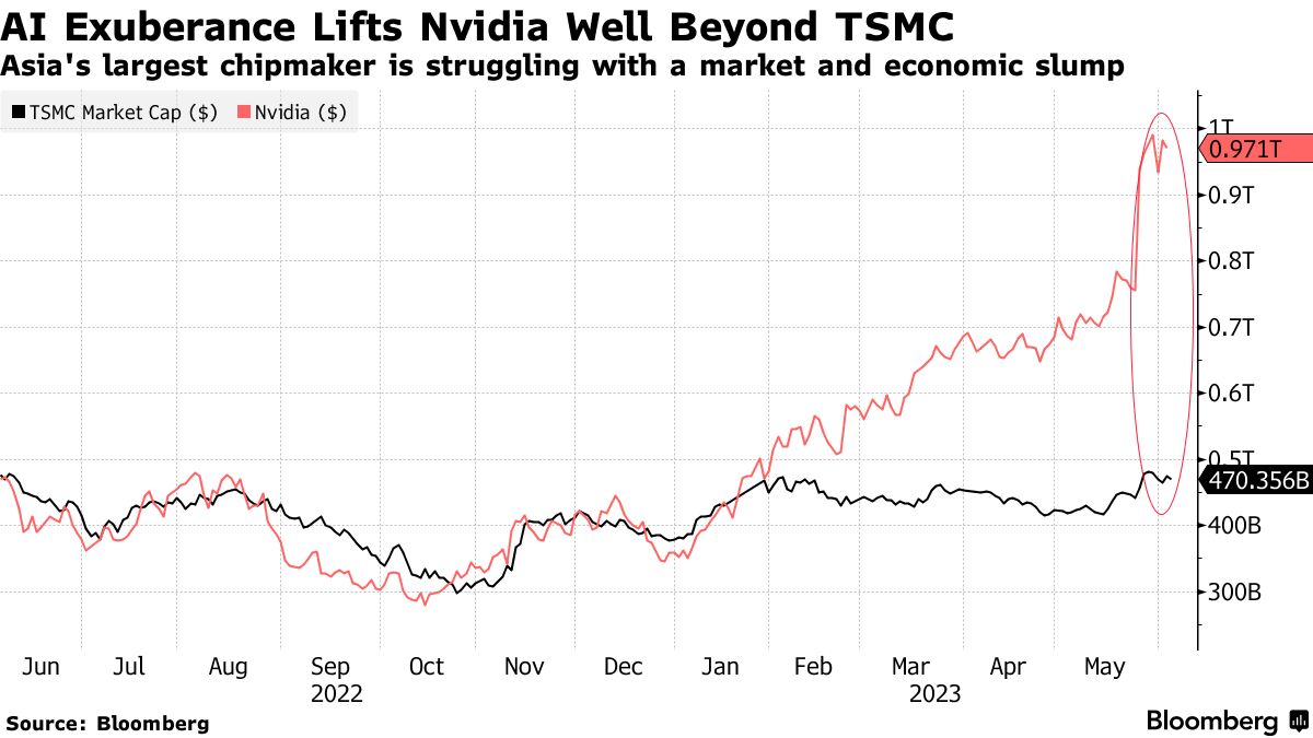 投资者正在押注台积电成为全球下一代人工智能开发竞赛中的重量级选手。顶级客户英伟达的芯片对ChatGPT、自动驾驶和新一代人工智能产品至关重要。由于华尔街对生成式人工智能的痴迷,这家美国公司的估值上周短暂超过了1万亿美元,支撑了台积电和其他为训练大型人工智能模型提供基础设施的电子公司的财富。