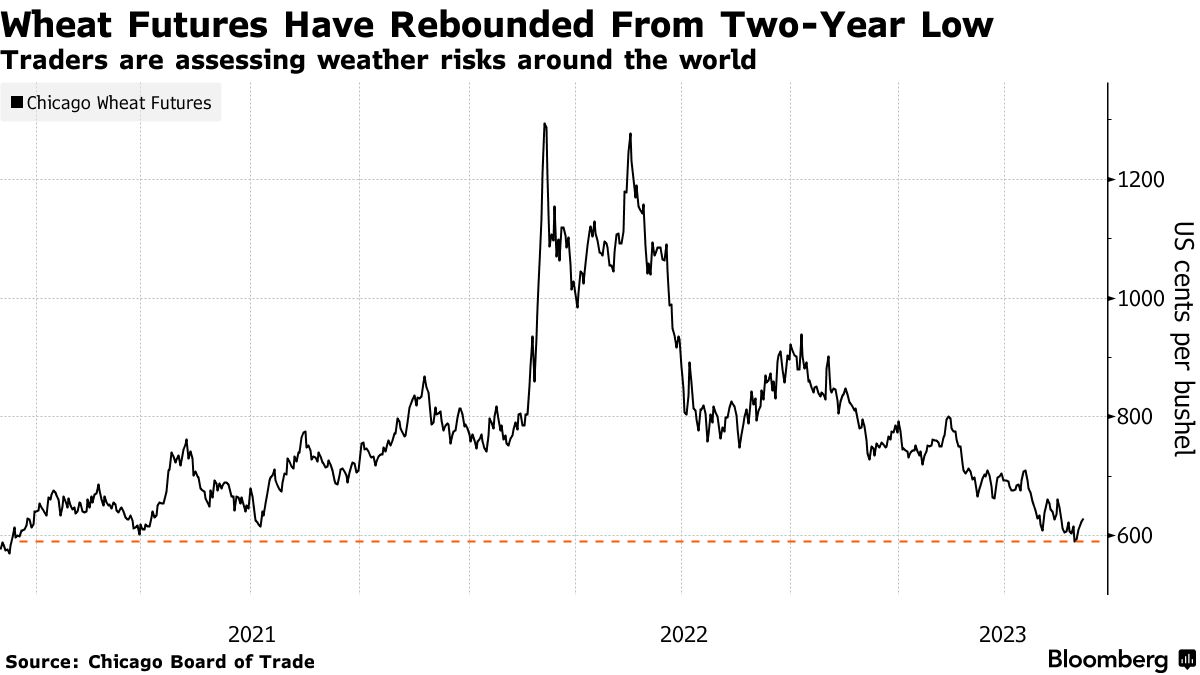 全球基准小麦期货在上周触及两年多来最低点后上涨了10%,因交易商在权衡全球各地的天气风险。截至悉尼时间下午1:05,价格上涨0.8%,达到每蒲式耳6.2875美元。