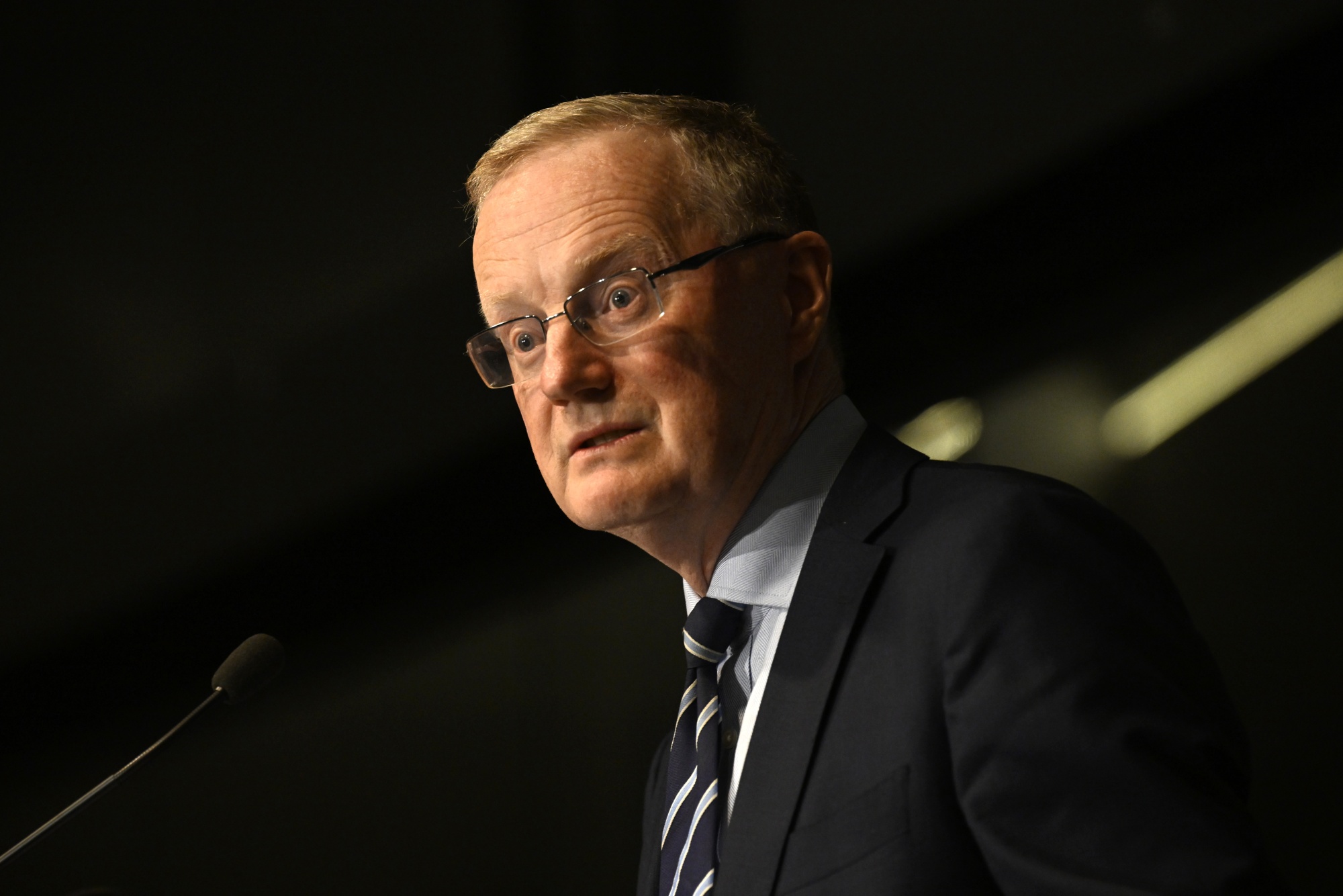 菲利普·洛威,澳大利亚储备银行行长,在2023年5月2日星期二在澳大利亚珀斯的中央银行董事会晚宴上讲话。