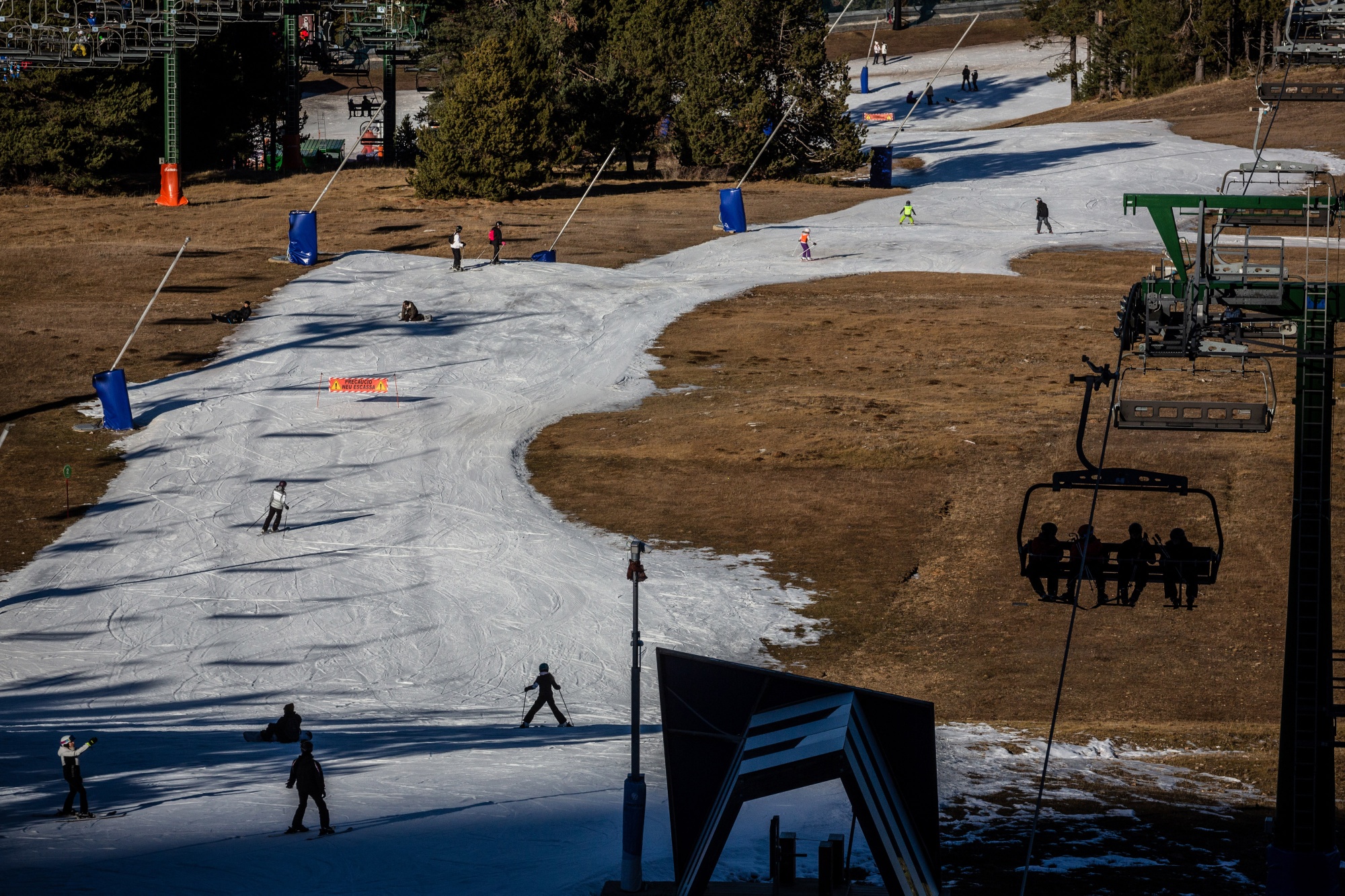 干燥的地面环绕着2023年1月5日西班牙赫罗纳拉莫利纳滑雪度假村狭窄的滑雪道上的积雪。摄影师:Angel Garcia/Bloomberg很少有行业像全球滑雪业那样直接面临气候变化的生存威胁。仅在美国,根据美国环境保护局和科罗拉多大学2017年的一项研究,预计到2050年,大约三分之一的滑雪胜地预计将损失超过一半的季节。