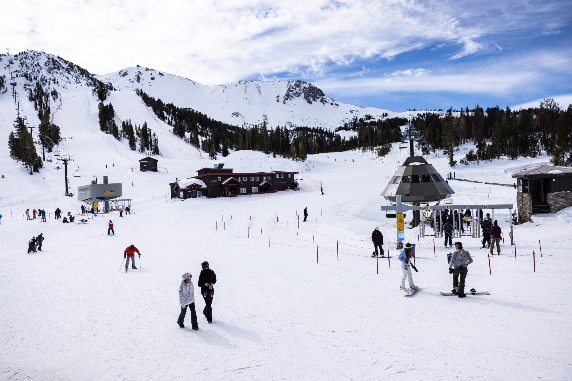 滑雪者在加利福尼亚州马莫斯湖的阿特拉玛莫斯山,2022年11月17日。