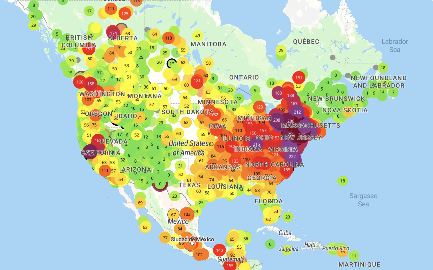 该公司为公民科学家提供了一个由超过23,000个软式空气质量传感器组成的网络,这些传感器可以部署在室内或室外。它们一起为一个公共实时地图提供动力,地图上覆盖着从绿色(适合外出)到红色和紫色(留在室内!)的五颜六色的点,这些点出现在世界各地的国家。