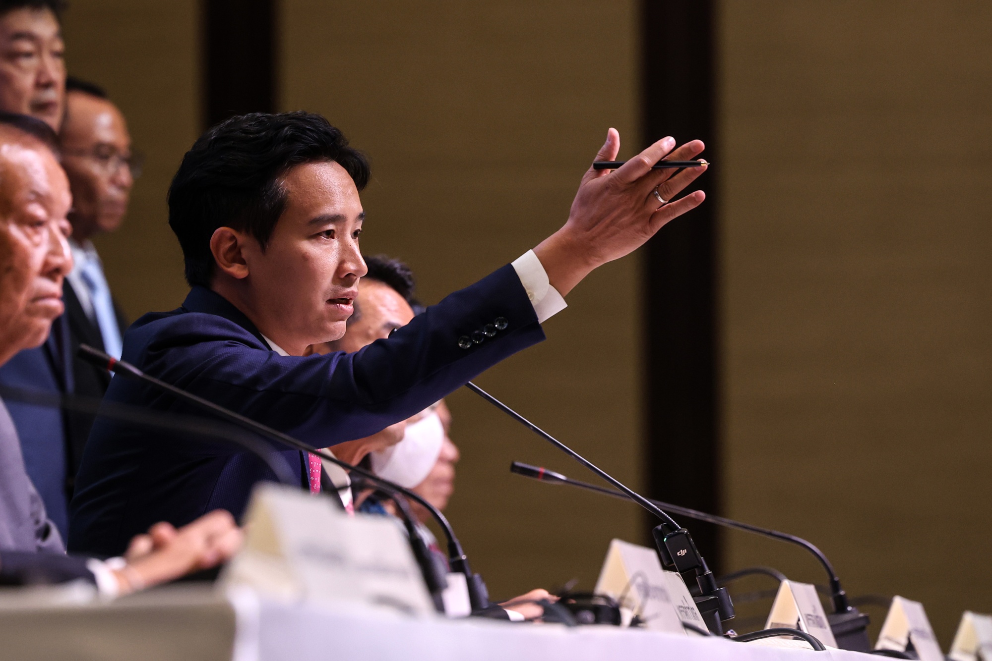 皮塔·林加罗恩拉特(Pita Limjaroenrat)在五月份曼谷的联合政党会议上。