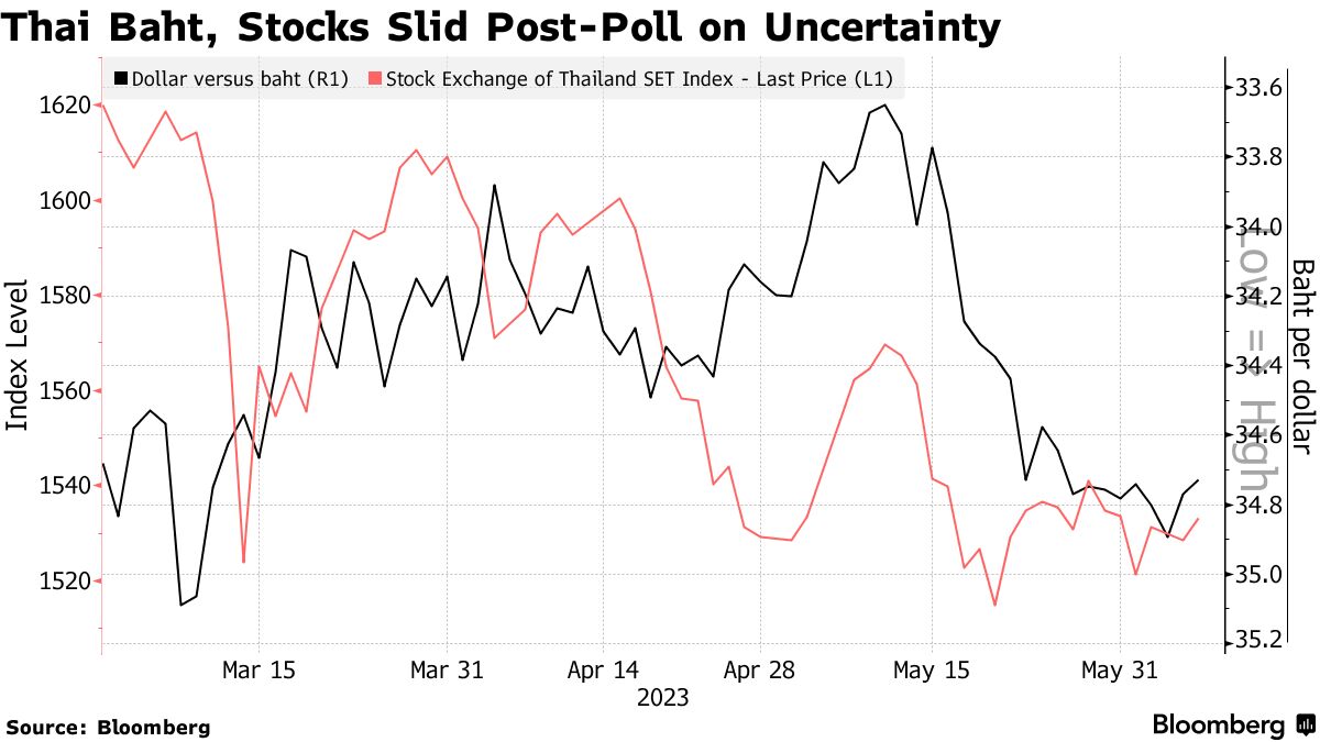 政府组建的不确定性和潜在的预算批准延迟使投资者感到恐慌,外国投资者今年迄今已从泰国股市撤出净额30亿美元,泰铢自投票以来贬值近3%,成为亚洲表现最差的货币。