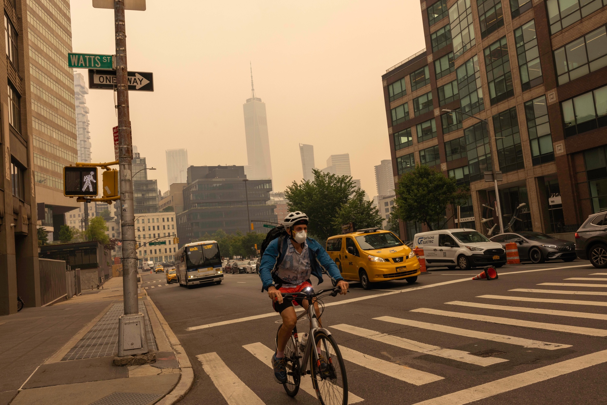 一名骑自行车的人戴着口罩,因加拿大野火的烟雾笼罩着美国纽约。摄影师:亚历克斯·肯特/彭博社中国出口在五月份连续三个月首次下降,随着全球需求疲软,给世界第二大经济体带来风险。海外出口从去年同期下降了7.5%,至2,840亿美元,比预期中的1.8%下降更糟糕。
