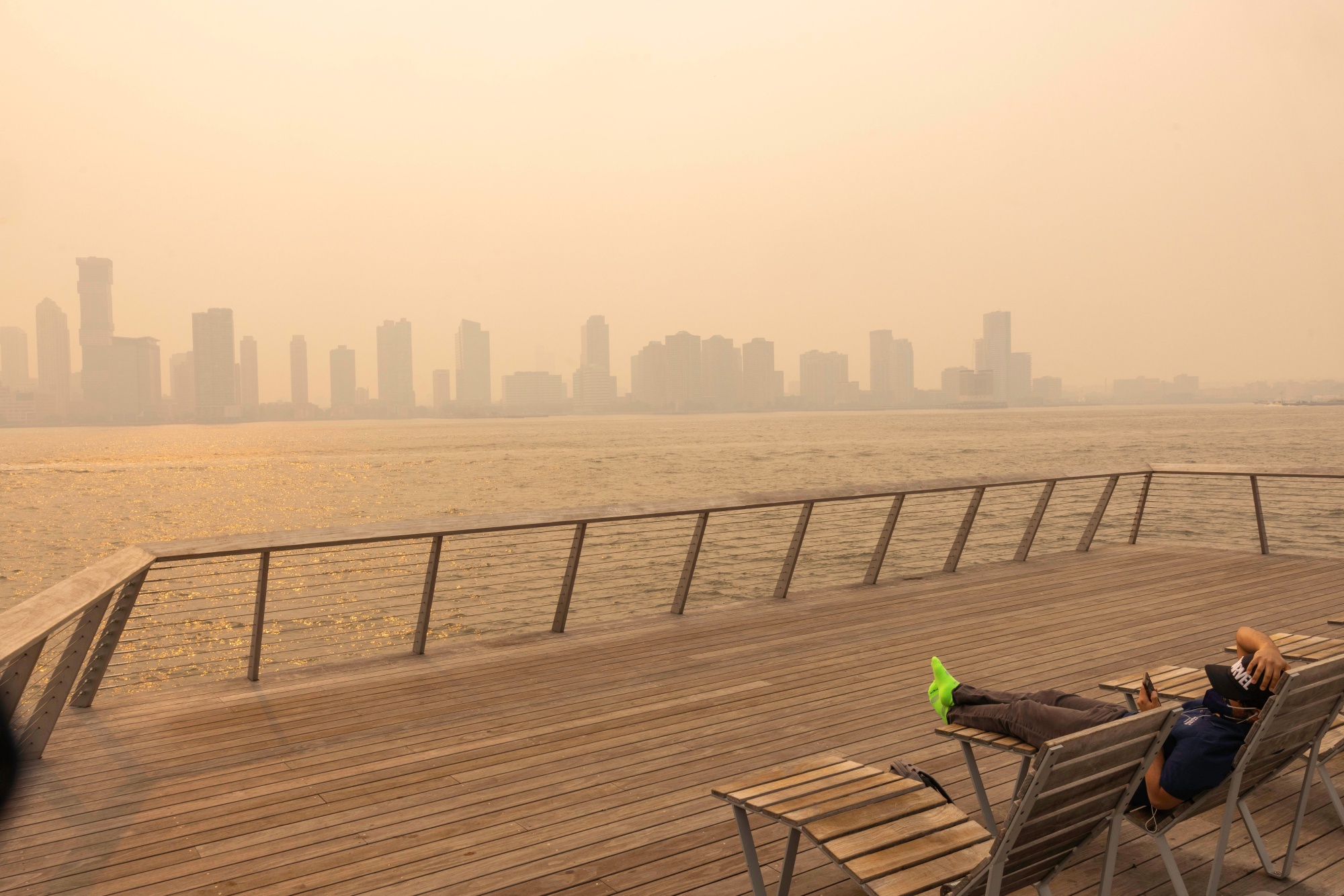 纽约市周三下午遭受了地球上任何主要城市中最糟糕的空气质量。市长埃里克·亚当斯敦促居民限制户外活动,学校宣布他们将让孩子们待在室内,因为更多的加拿大烟雾在一天之内向南飘移。在哈德逊河对岸的新泽西,州长菲尔·墨菲称乌烟瘴气的天空是“气候危机加剧的证据。”