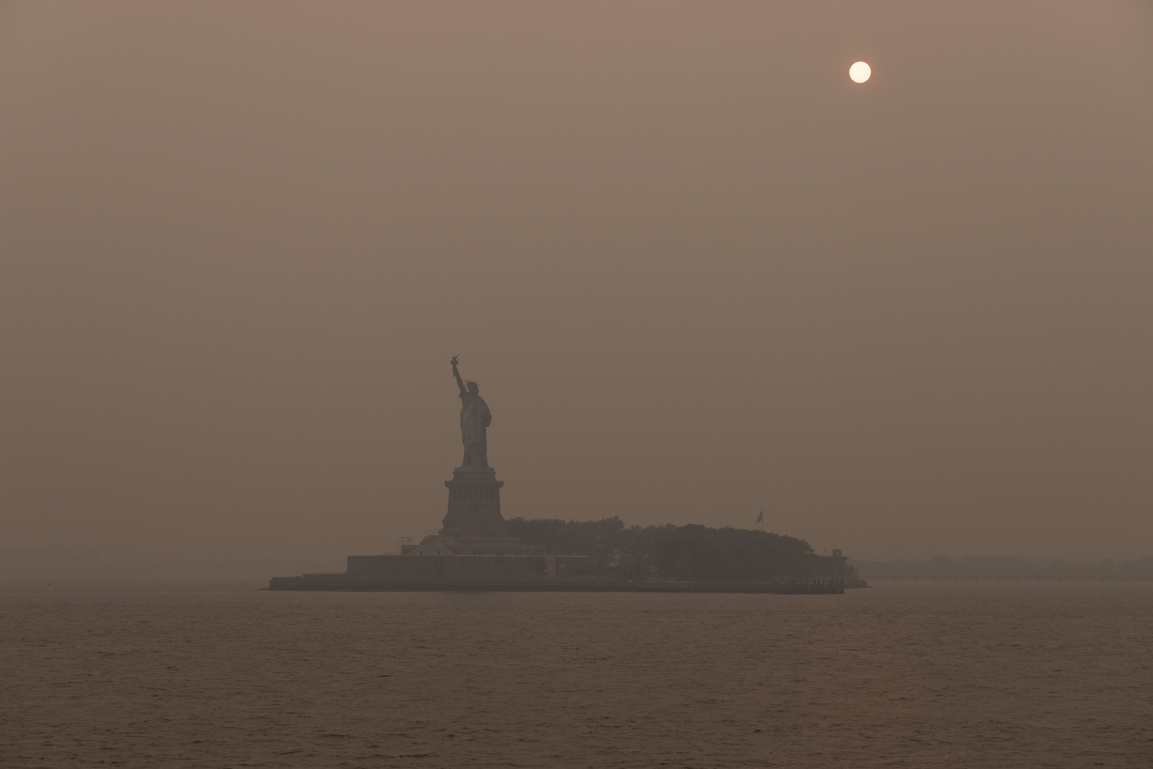 自由女神像被加拿大野火烟雾笼罩在纽约,时间是6月7日。摄影师:Victor J. Blue/Bloomberg阅读更多:东海岸空气危机预计持续到周二:烟雾最新消息