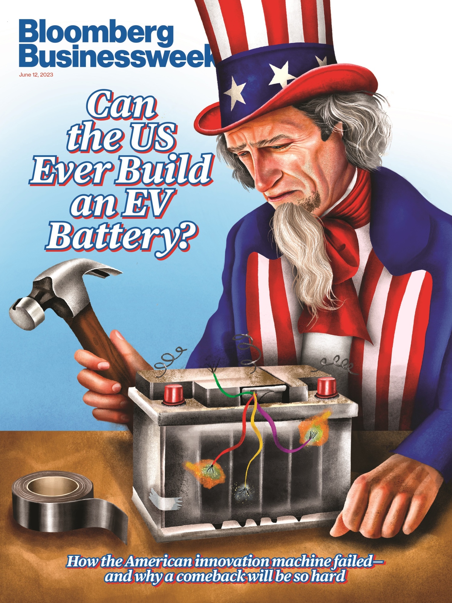 在Bloomberg Businessweek中特别报道,2023年6月12日。立即订阅。插图:Michelle Rohn为Bloomberg Businessweek绘制“美国有一项产业政策。这就是政策:我们没有。”曾在阿贡国家实验室花费超过十年时间试图商业化电池技术的Jeff Chamberlain在2016年创立了一家风险投资公司。“我不是说我们应该变成社会主义或共产主义,但其他拥有几十年产业政策的国家,他们将会吃掉我们的午餐。”