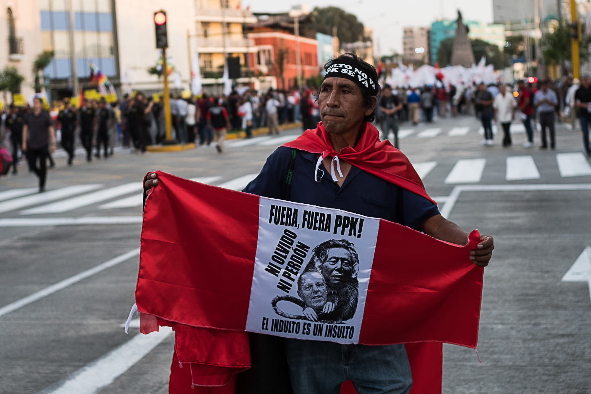2018年反对当时总统佩德罗·巴勃罗·库琴斯基赦免前独裁者阿尔贝托·藤森的抗议活动。摄影师:Mauricio Palos/Bloomberg库琴斯基将被一群富吉莫派救下,他们在12月21日的弹劾投票中出人意料地支持他,使他得以幸免。圣诞节前夕,库琴斯基释放了富吉莫里。(秘鲁法院后来发现这一赦免是非法的,撤销了对富吉莫里的赦免。)三个月后,议员们再次试图弹劾库琴斯基,声称他与奥德布雷赫特的关系比之前所知更深。2018年3月,他辞职了。