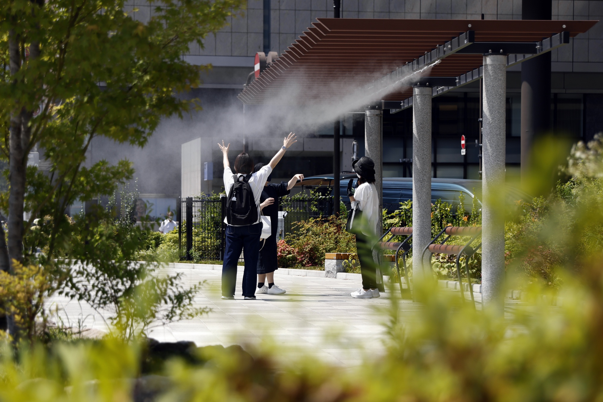 东京去年夏季热浪期间使用的冷却雾喷雾。摄影师:Kiyoshi Ota/Bloomberg居民被敦促减少使用从烘干机到烤面包机等耗能设备,但在炎热的夏季月份有中暑风险时建议继续使用空调。