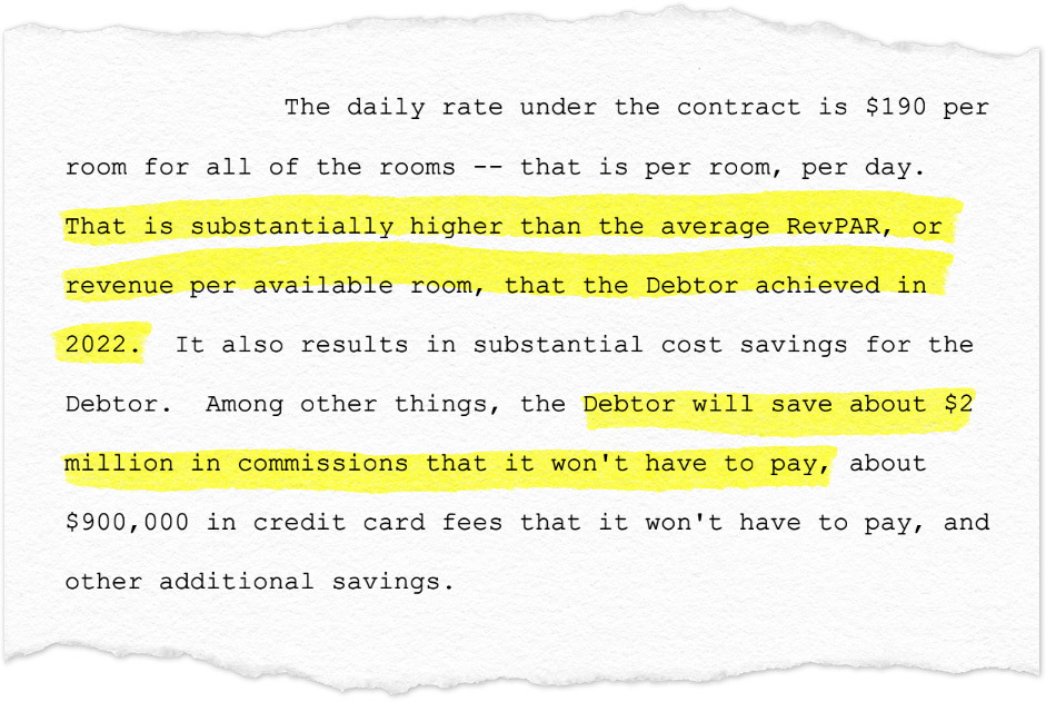 假日酒店不仅通过签署合同成为了一个“优秀的企业公民”,据破产申请文件显示,预计将获得“可观”的1050万美元利润。