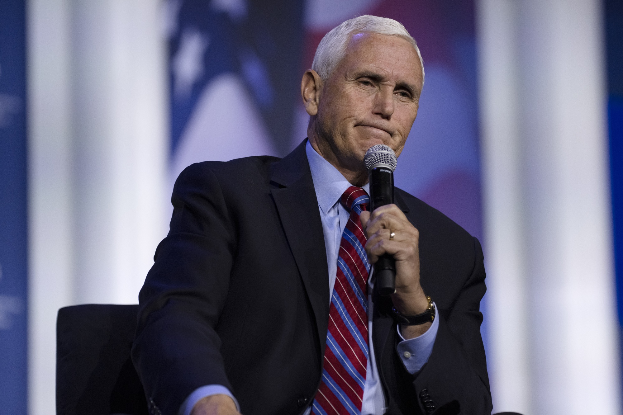 朗·德桑蒂斯摄影师:Scott Olson/Getty Images迈克·彭斯特朗普的前副总统,在国会暴动期间幸免于特朗普支持者的袭击,试图左右逢源。