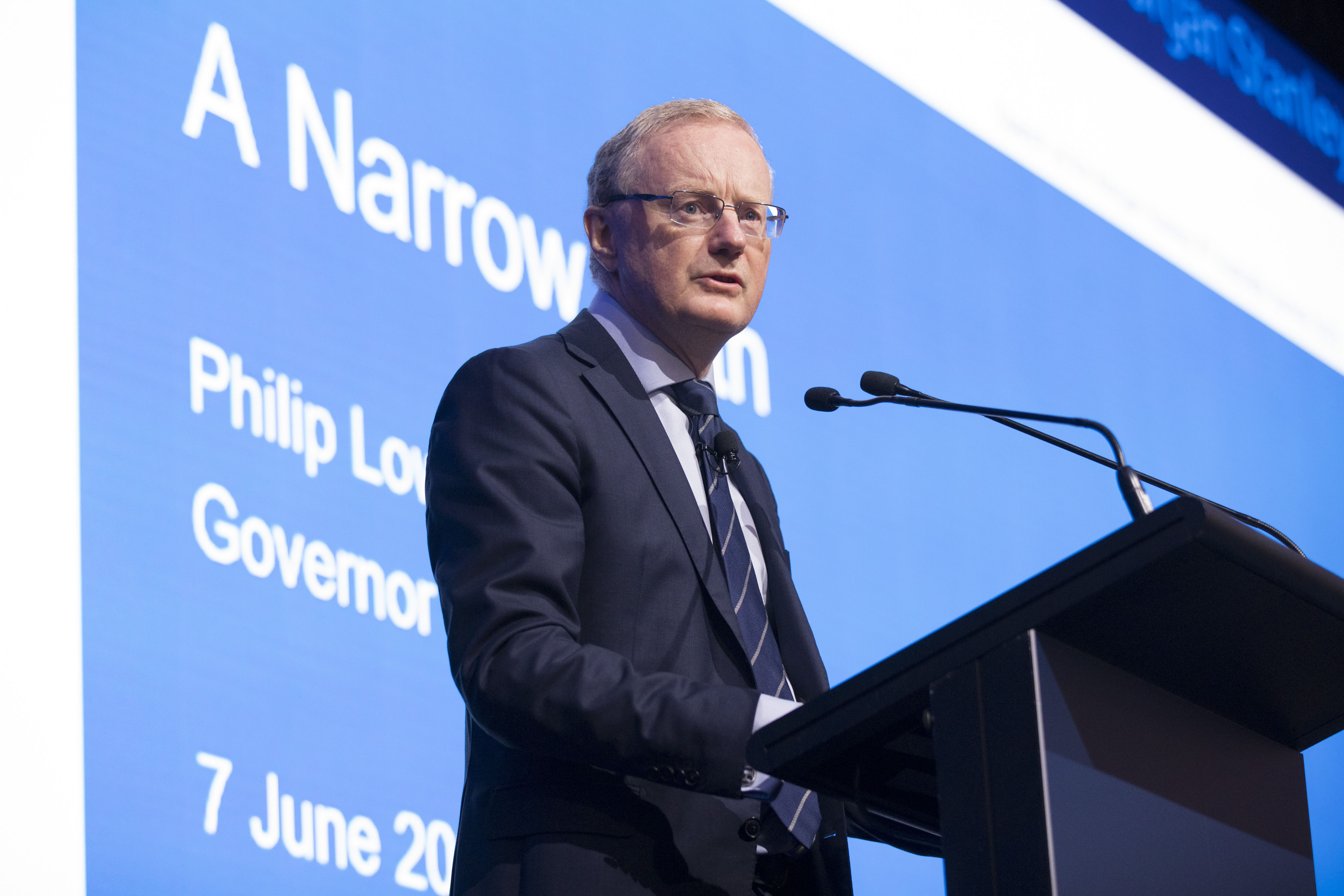 澳大利亚储备银行行长菲利普·洛在本月的摩根士丹利澳大利亚峰会上发言。