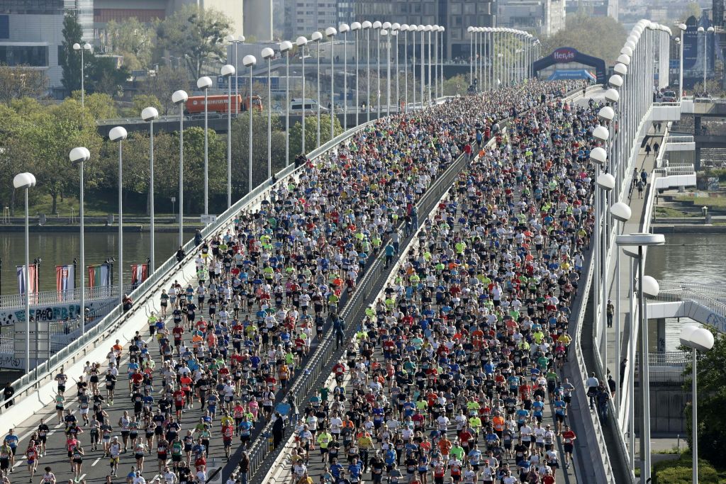 参加第40届维也纳城市马拉松比赛的参与者在2023年4月24日在奥地利维也纳的Reichs桥上跨越起点。