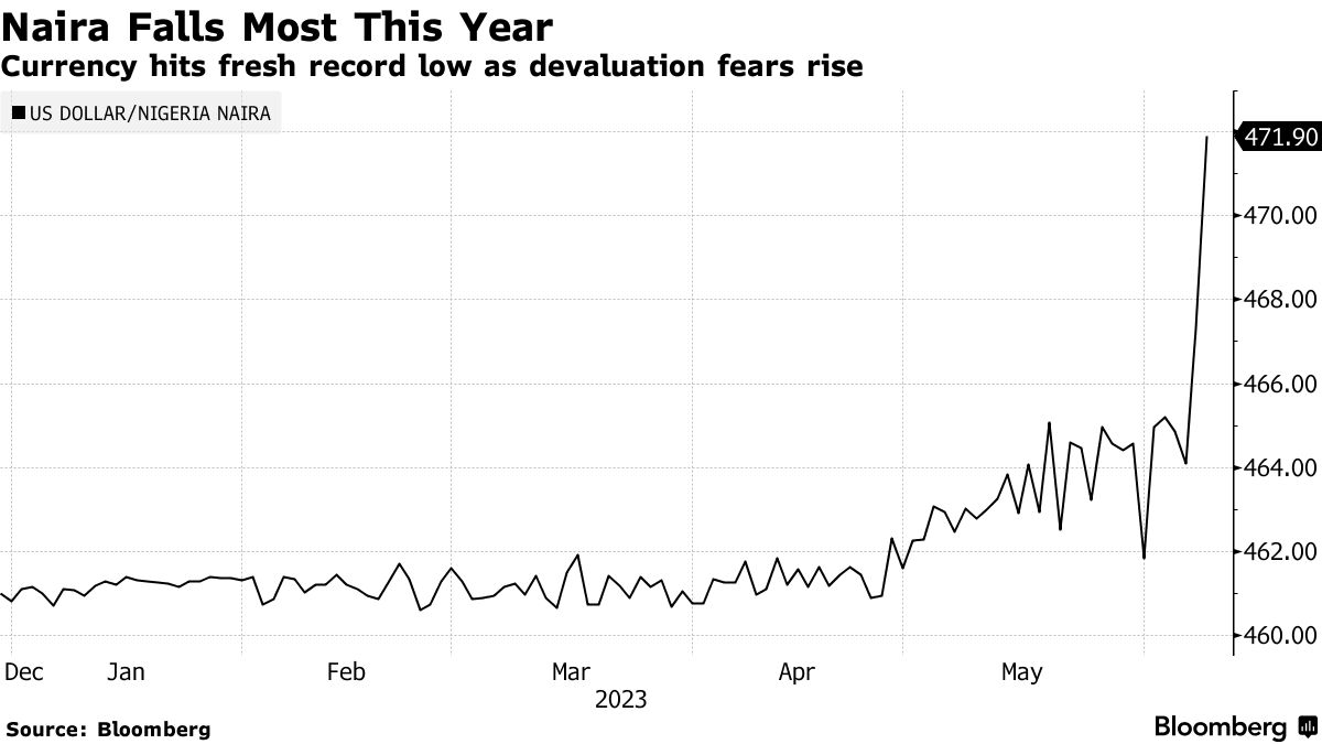 根据摩根大通分析师5月31日的一份报告,当前尼日利亚奈拉对美元的汇率为471.92,创下历史新低,可能需要调整至约700-750奈拉,接近当前黑市汇率。