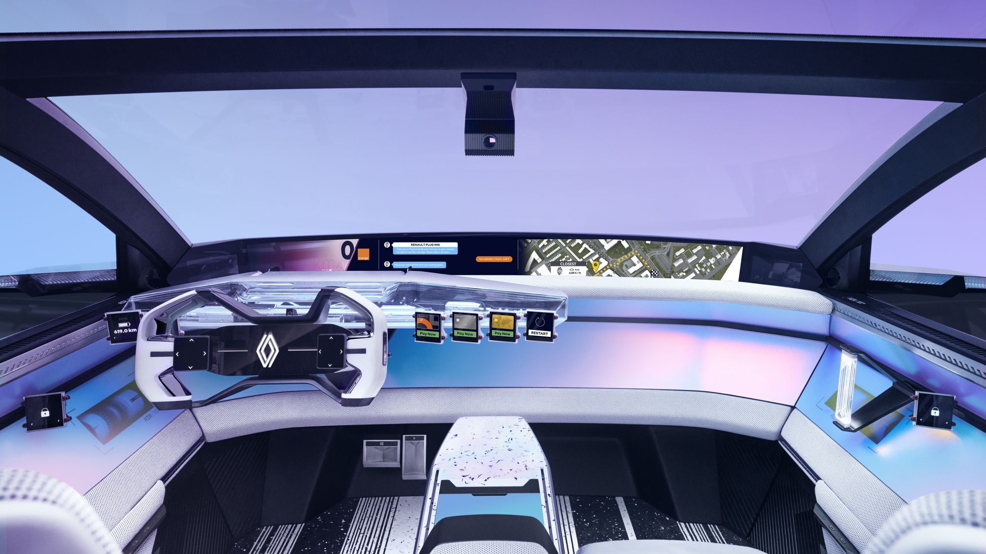 H1st Vision概念车的内饰。来源:Software République雷诺和一系列技术合作伙伴推出了一款未来概念车,展示了生物识别、能源效率和网络安全功能方面的进步。H1st Vision基于雷诺Scenic,于巴黎VivaTech大会展出,展示了来自汽车制造商和五家法国科技集团(芯片制造商意法半导体、软件制造商达索系统、电信运营商Orange、国防公司泰利斯和IT提供商阿托斯)合作的20项创新。