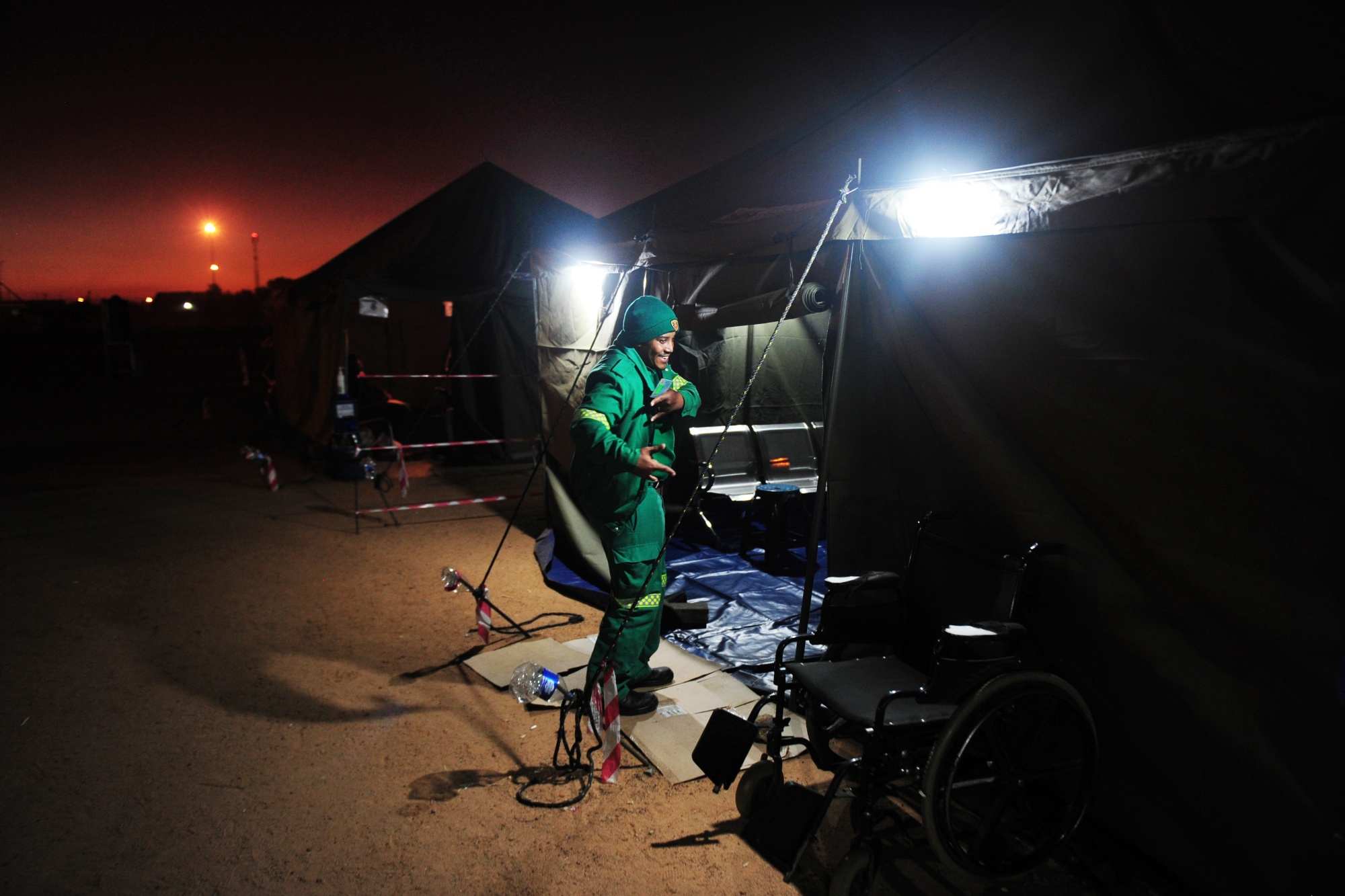 一名护理人员进入了汉曼斯克拉尔卡纳纳非正式定居点的临时帐篷。摄影师:Leon Sadiki/Bloomberg早在2004年,当局就意识到特斯瓦内的Rooiwal废水处理厂已经超负荷运转。生活污水涌入Apies河,最终进入Temba水处理厂。南非水资源和卫生部于2011年宣布该河的部分地区为灾难区,并承诺到2015年对Rooiwal进行升级。但这从未发生。