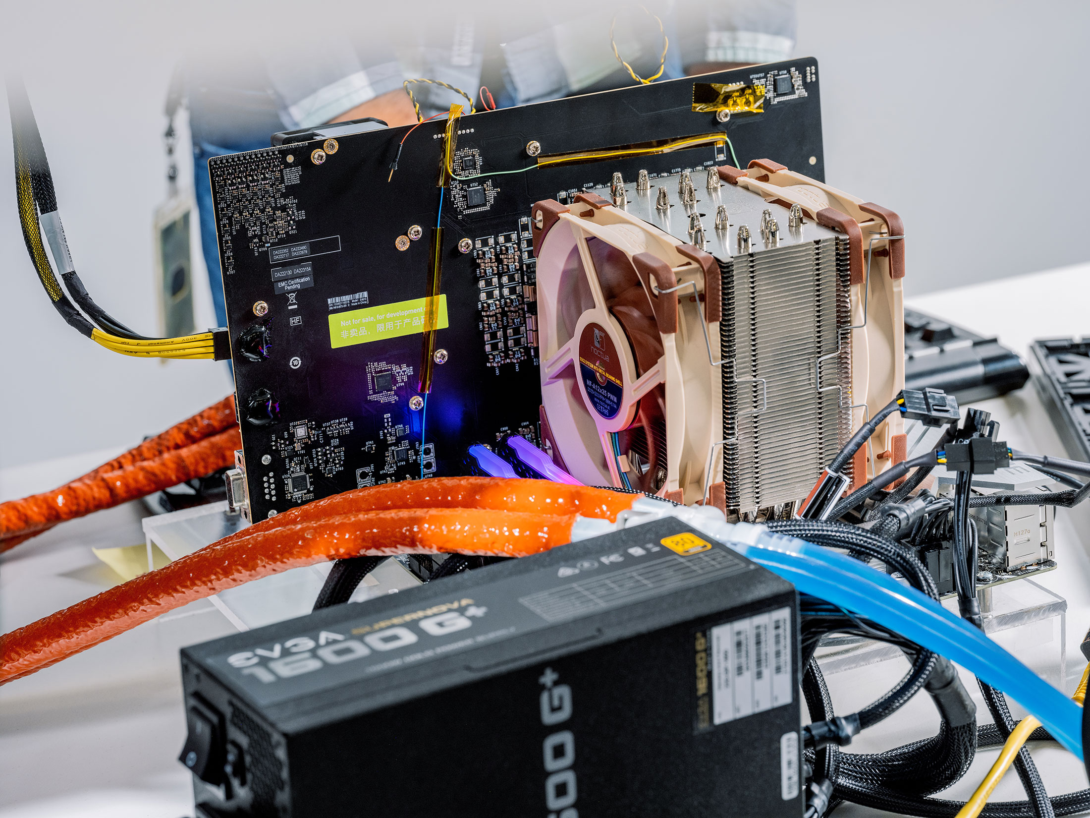 GPU测试装置。摄影师:Kelsey McClellan,彭博商业周刊工程师们的工作是让这些微小的火虫活过来,当他们将原型插入测试装置时,他们通常看起来像是恐惧到恶心的地步。他们祈祷它能够打开并且运行速度如预期那样快。任何故障可能需要硅修正,或者“重新旋转”,这可能需要数月时间,并且会导致数亿美元的销售损失。Nvidia的高级副总裁Jonah Alben表示,没有胜利的时刻,只有“逐渐减少的担忧感”。