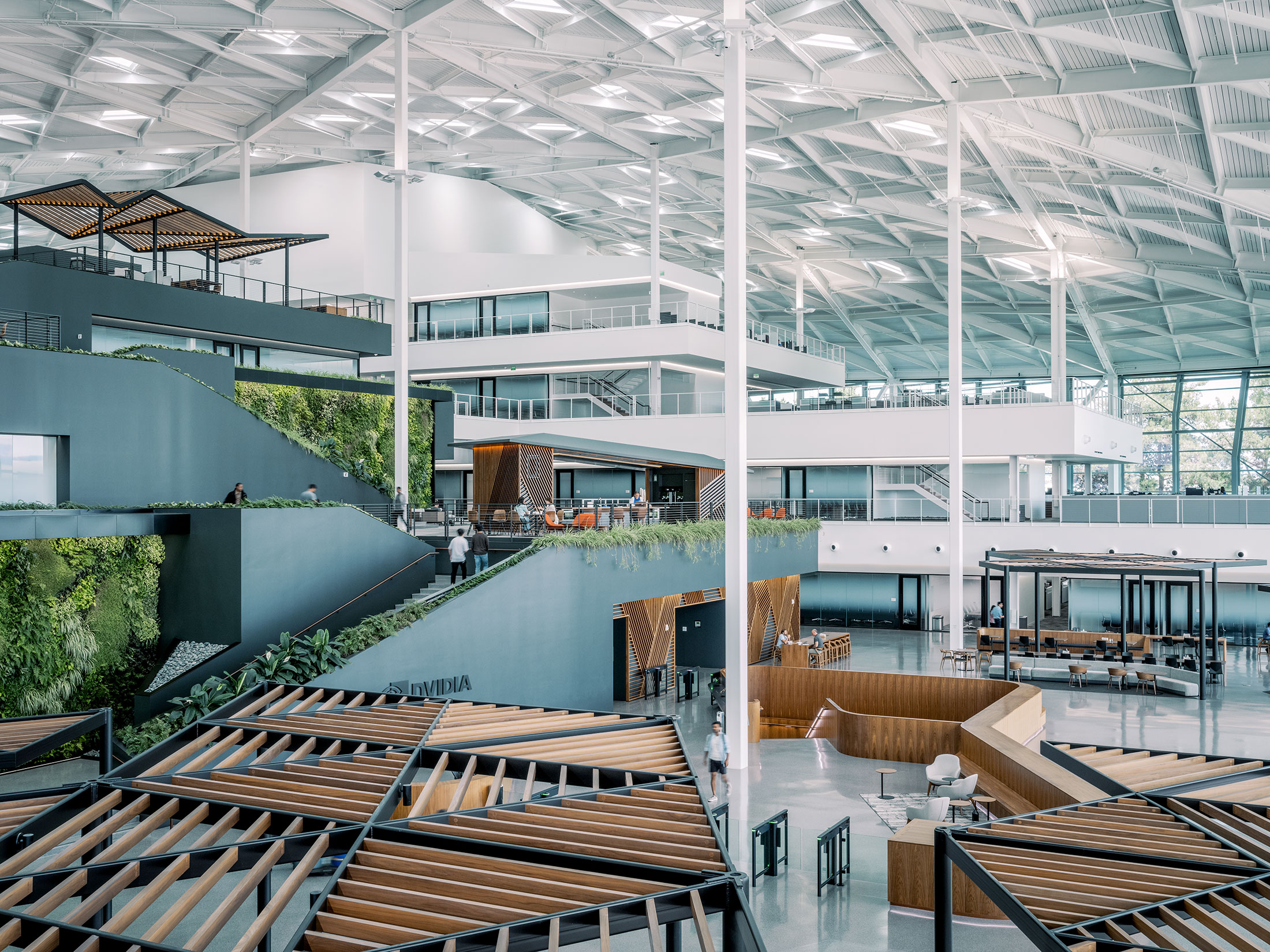 Nvidia总部。摄影师:Kelsey McClellan,彭博商业周刊在最近一个阳光明媚的下午,黄仕豪蹒跚进入了一个以迈克尔·克莱顿的《西部世界》命名的会议室。那天早上,黄仕豪飞往了另一个科技会议——这次在拉斯维加斯——发表了主题演讲,与客户握手,接受了电视采访,然后飞回硅谷进行这次采访。黄仕豪倒在了一张灰色沙发上。他有权感到疲倦,但他似乎在装出疲惫的样子作为一个玩笑。