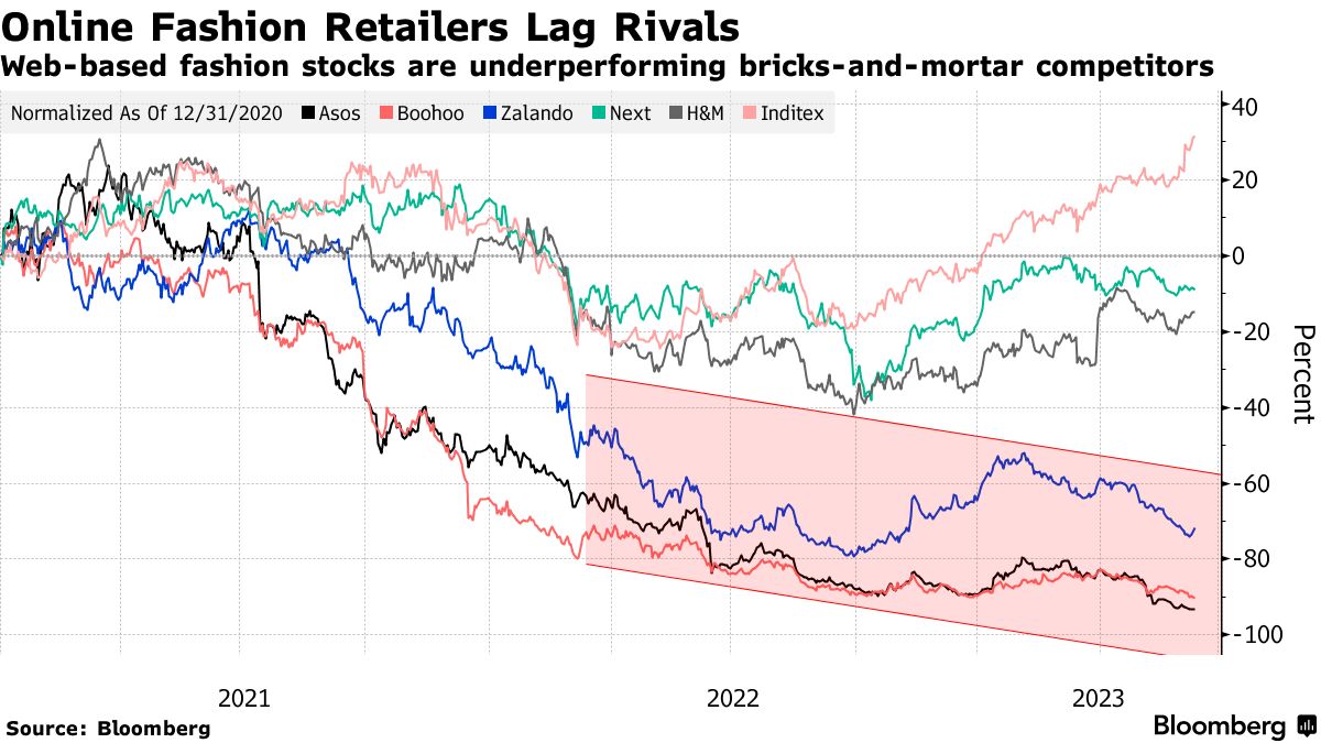 在新冠封锁期间蓬勃发展后,仅在线时尚品牌最近遇到困难,因为消费者重新开始前往实体店购物。购物者还优先考虑在食品和家庭账单等昂贵必需品上的支出,留下很少的钱用于服装等自由购买。