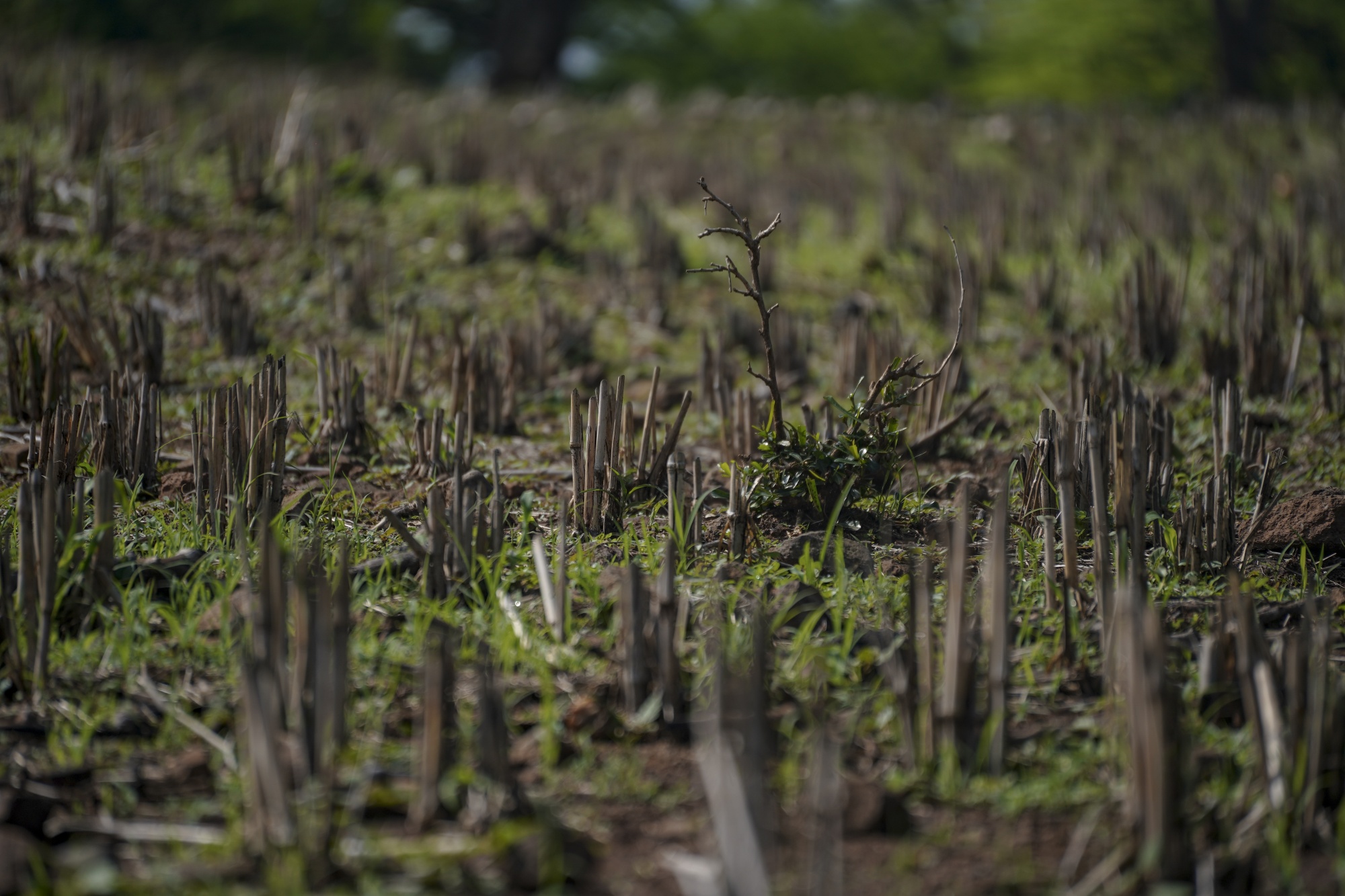 巴萨基纳,萨尔瓦多拉乌尼翁省受干旱影响的农场上枯死的玉米植株。