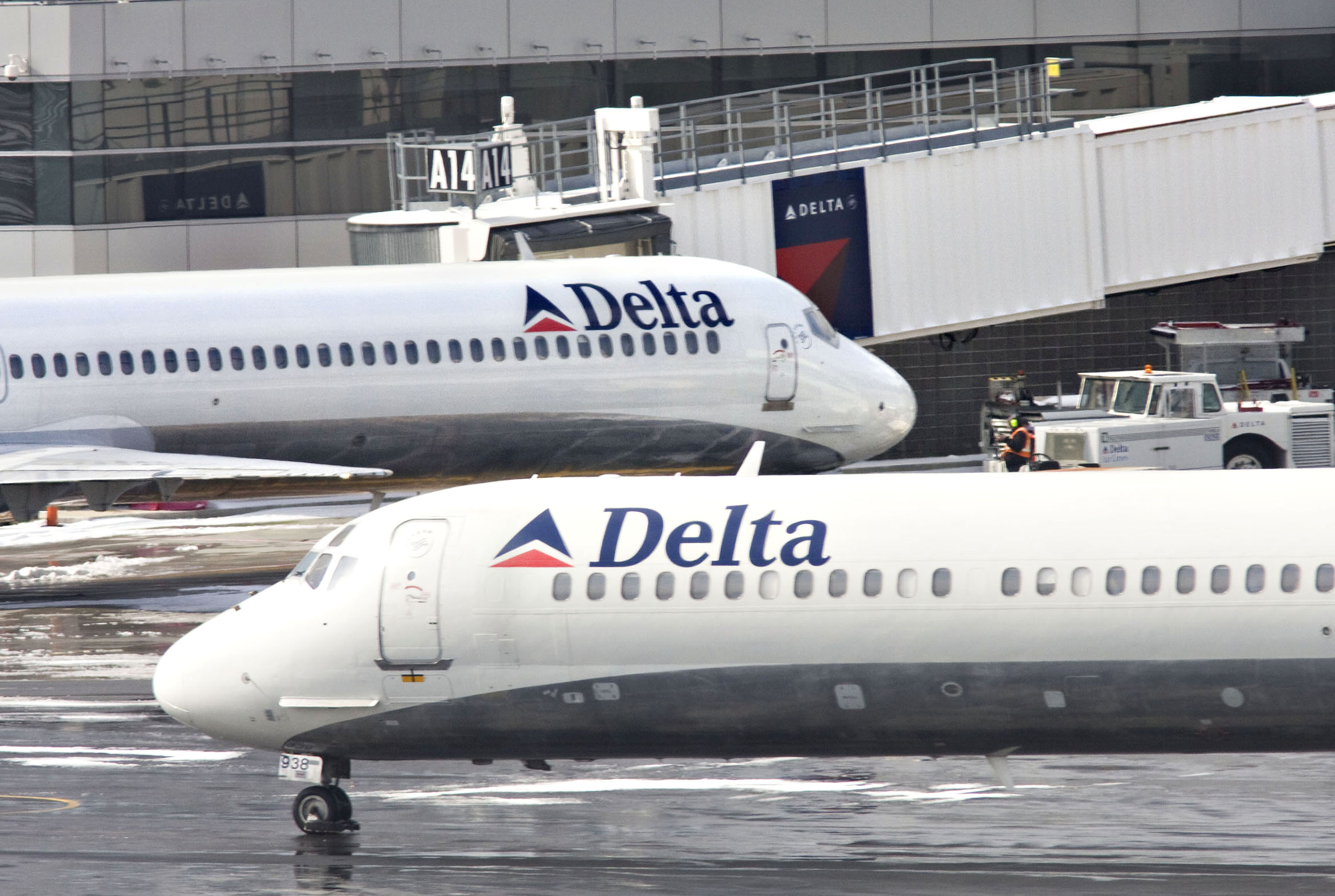 达美航空公司的飞机在马萨诸塞州波士顿的洛根国际机场滑行。