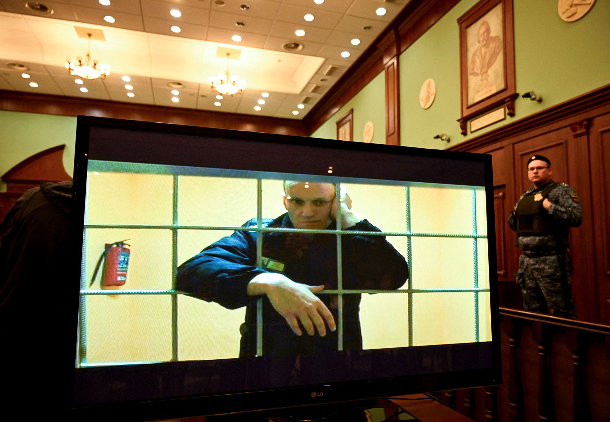 阿列克谢·纳瓦尔尼在2022年出现在莫斯科市法院的屏幕上。