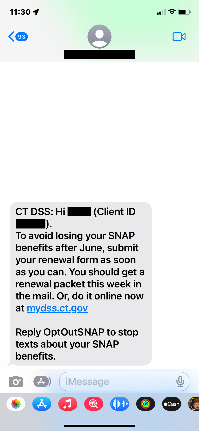 Miller摄影师:Evan Cobb为《彭博商业周刊》这项合作旨在让该州向参加联邦补充营养援助计划(SNAP)的居民发送短信,该计划为收入和资产低于一定门槛的人提供食品券。第一步将是向SNAP领取者发送续订提醒的有限试点项目——如果领取者不是老年人或残疾人,则必须每六个月通过邮寄或在线重新提交文件。根据2014年美国农业部对六个州进行的一项研究,发现每年有17%至28%的SNAP领取者因文件问题而失去福利,其中绝大多数是在需要重新认证时。CfA预测,如果试点项目取得成功,他们在五年内可以帮助多达135,000名康涅狄克州居民保留他们的食品券。他们还可以将短信用于其他目的,并最终希望彻底改革康涅狄克州居民申请福利的方式。