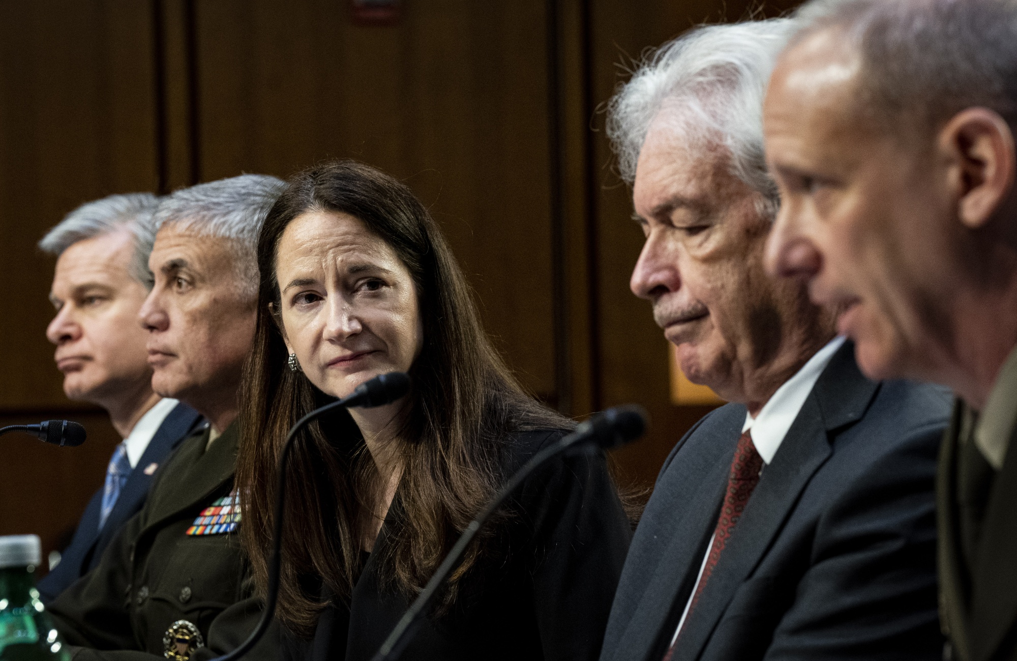 克里斯托弗·雷(Christopher Wray)是美国联邦调查局(FBI)局长,保罗·纳卡索尼(Paul Nakasone)是国家安全局(NSA)局长,艾薇尔·海恩斯(Avril Haines)是国家情报总监,威廉·伯恩斯(William Burns)是中央情报局(CIA)局长,斯科特·贝里尔(Scott Berrier)是国防情报局(DIA)局长,在美国华盛顿特区参加了参议院情报委员会的听证会。