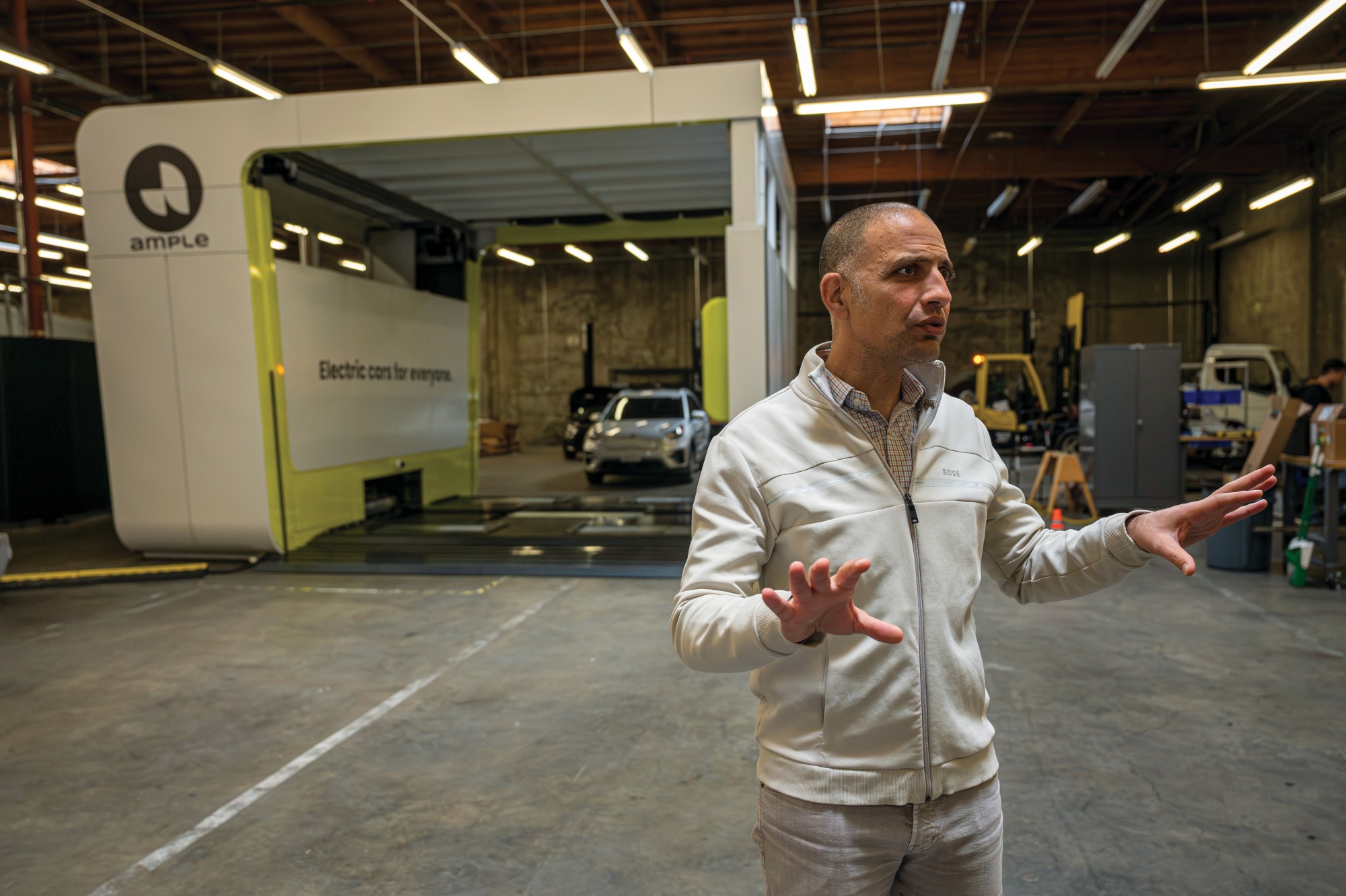 Ample联合创始人兼首席执行官Khaled Hassounah于5月4日在公司旧金山总部。摄影师:David Paul Morris/BloombergAmple从Better Place的失败中吸取了另一个教训:说服汽车制造商生产配备可更换电池的电动汽车的重要性。在Better Place倒闭之前,其站点只能更换雷诺的一种车型的电池,而这款车型是法国汽车制造商专门为此修改的。Ample制造自己的模块化电池组,可以为任何车辆配置,并与汽车制造商合作设计可拆卸的适配器板。
