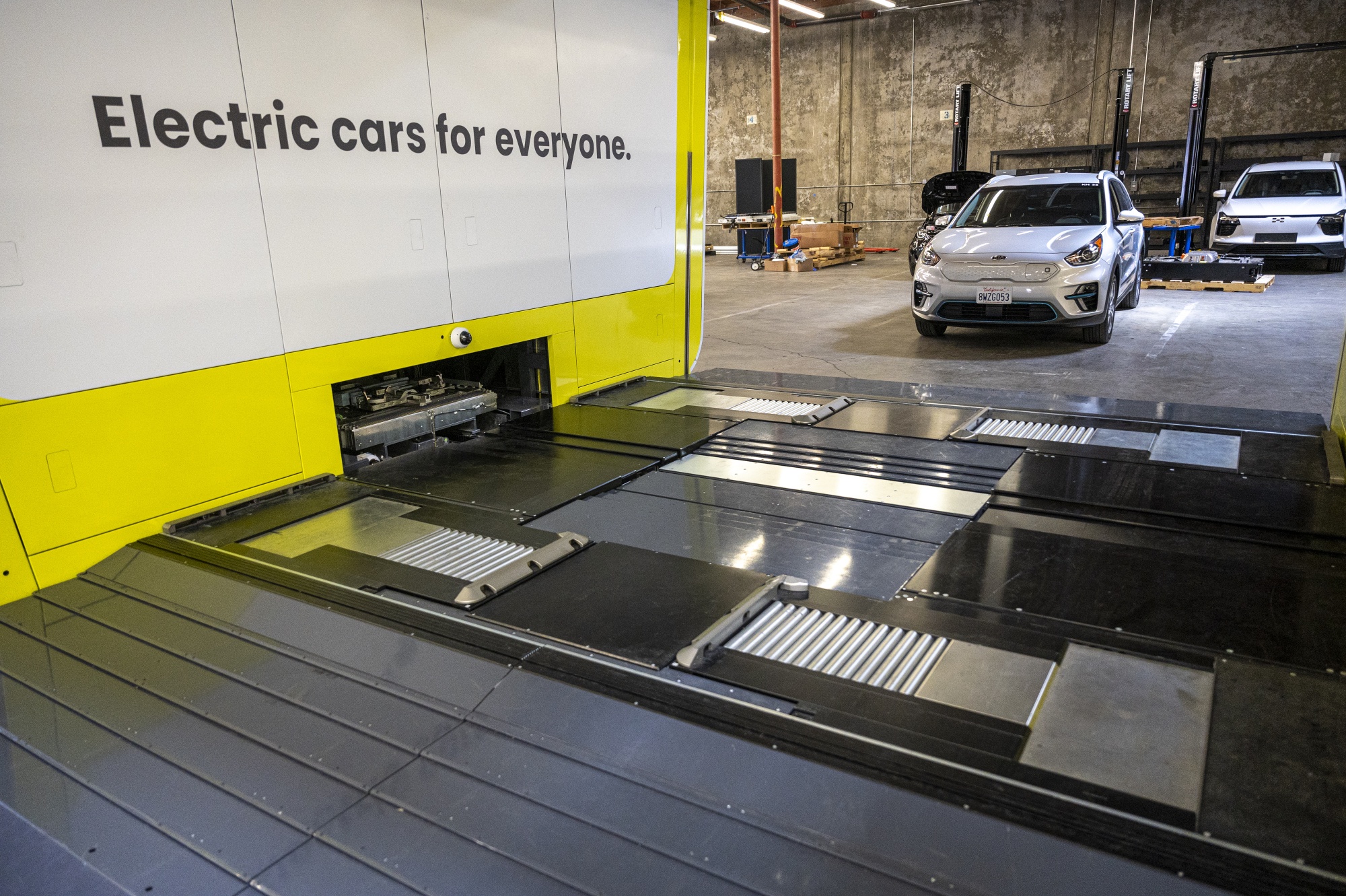 到目前为止,该公司已与五家车辆制造商签署了合作伙伴关系,并为20款电动汽车设计了适配板。在Ample的展示中,停放着一辆由Stellantis制造的Fiat 500和一辆Citroen货车,以及Niro、日产Leaf、Fisker Inc.的Ocean SUV和一辆由德国制造商e.Go生产的城市微型车。