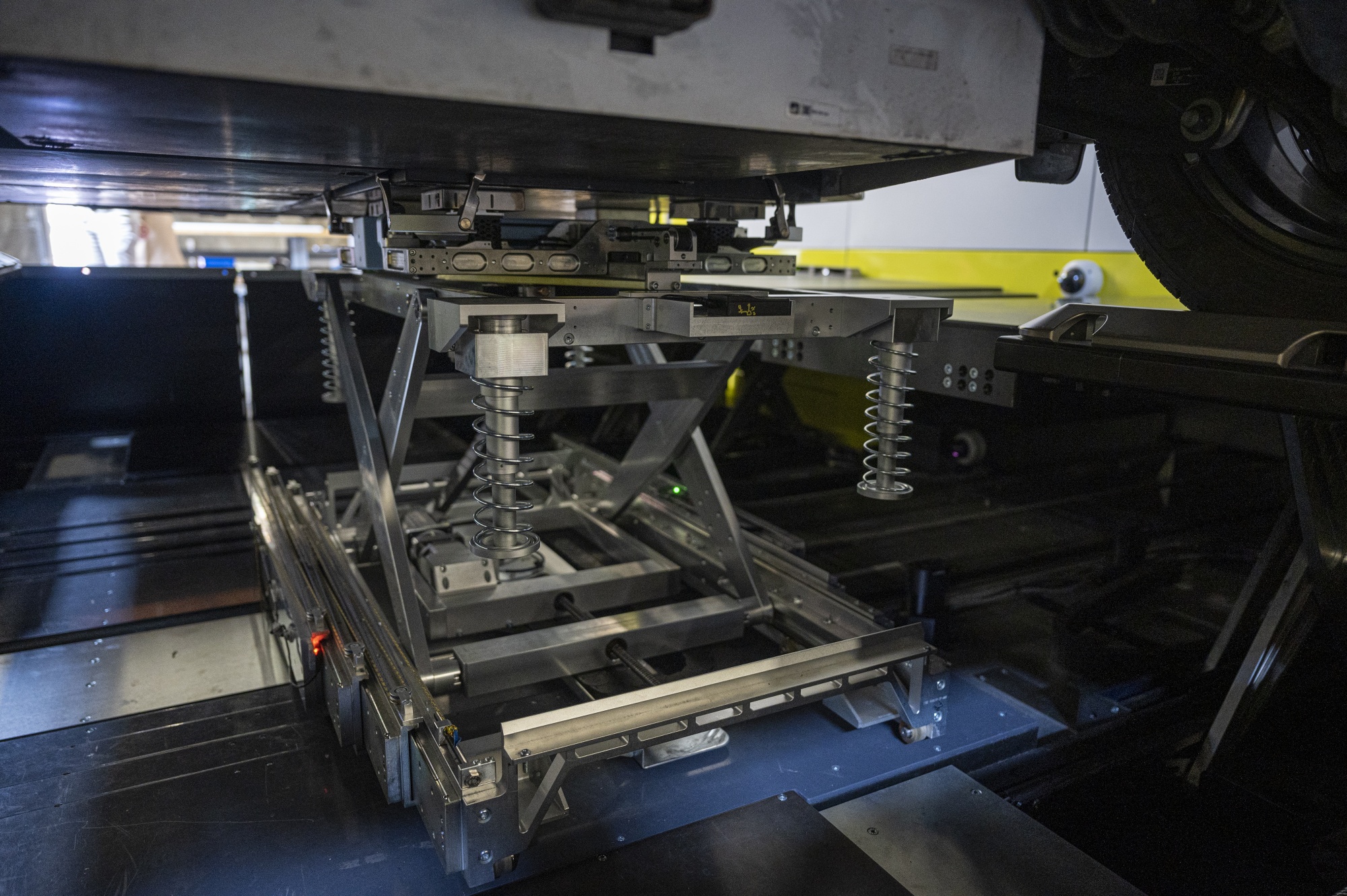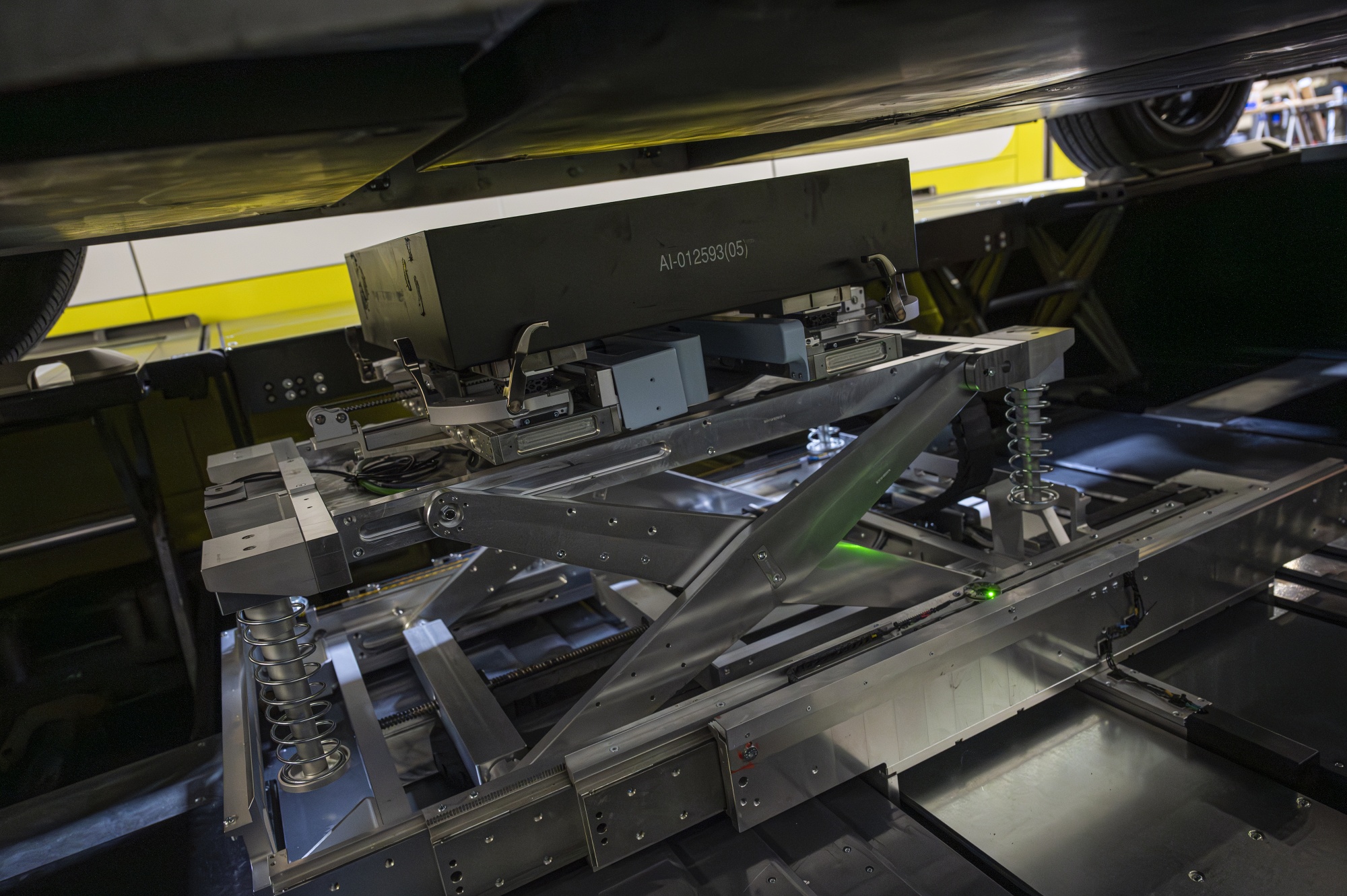 在旧金山的公司总部,Ample展示了一个充足的电池更换站。