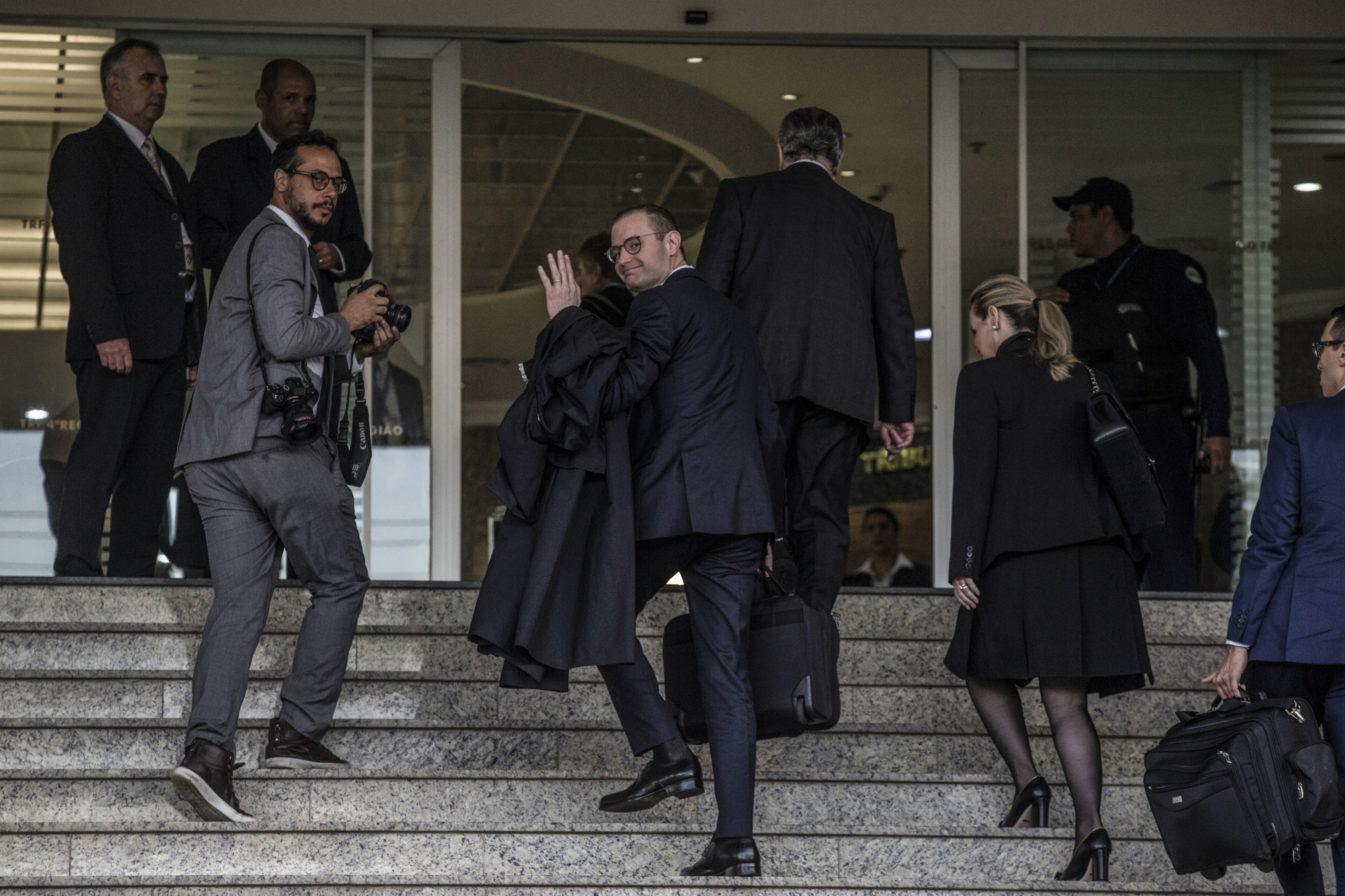 克里斯蒂亚诺·扎宁·马丁斯,总统路易斯·伊纳西奥·卢拉·达席尔瓦的律师,中间向媒体成员挥手,当时他正在巴西波尔图阿莱格雷的联邦法院大楼前抵达,日期为2018年1月24日。摄影师:达多·加尔迪里/彭博社巴西参议院周三确认总统路易斯·伊纳西奥·卢拉·达席尔瓦提名他的个人律师担任国家最高法院的空缺席位。