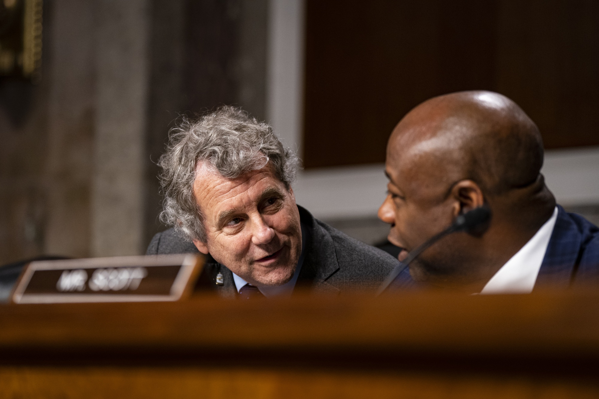 参议员谢罗德·布朗和参议员蒂姆·斯科特摄影师:阿尔·德拉戈/彭博社斯科特表示,该法案针对的是银行高管。但他表示,一项修正案将使银行监管更加透明。其中包括要求银行监管机构在机构失败的情况下向国会提交详细报告,并根据他的办公室的说法,将联邦储备系统的半年度报告纳入其工作人员效率指标。许多共和党人部分责怪监管机构未能适当监督这些陷入困境的贷款人。