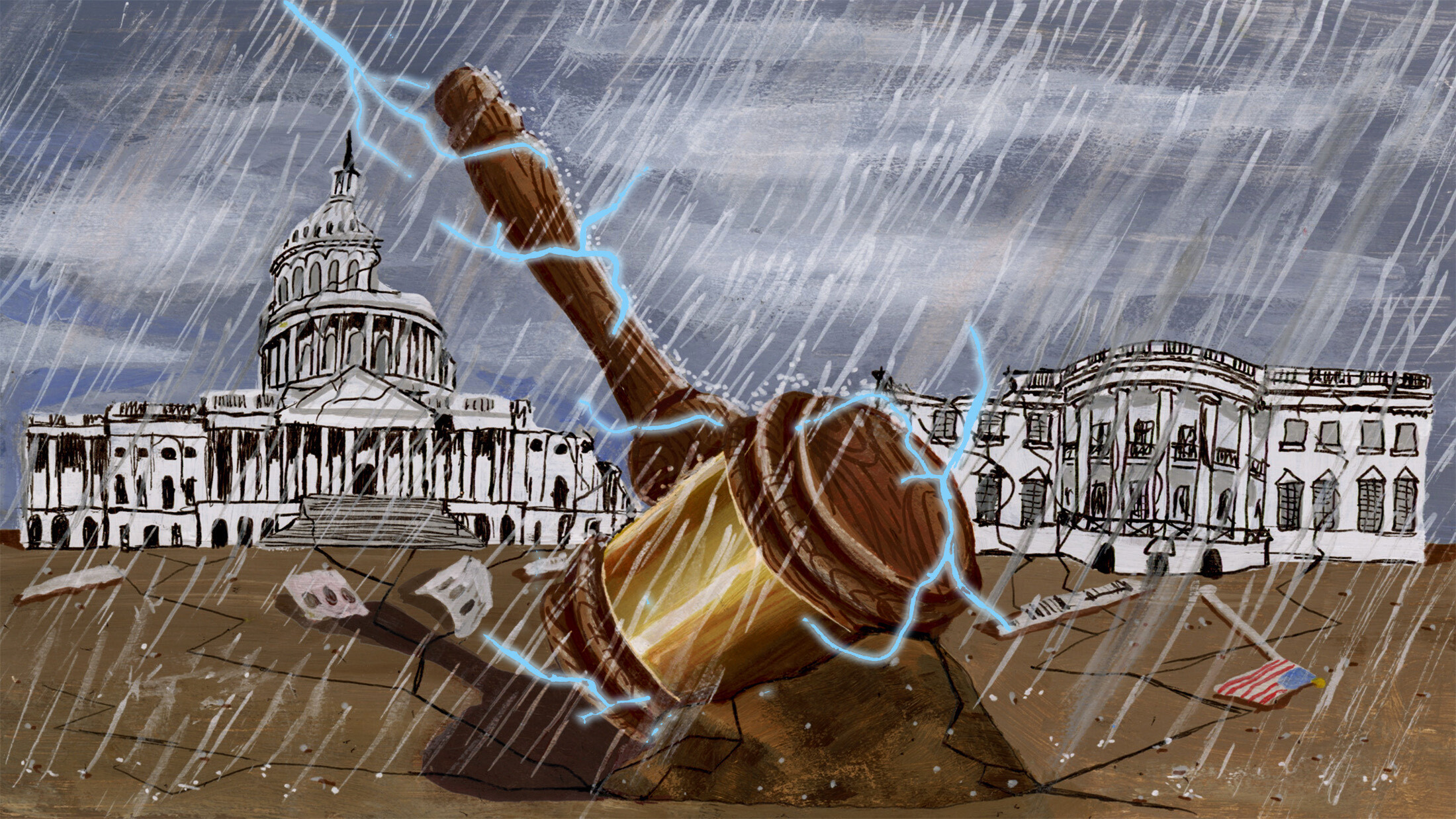 插图:Brandon Celi在一系列考验美国民主核心原则的裁决中,最高法院从未像现在这样积极运用其权力 — 或者被美国人看待得如此怀疑。