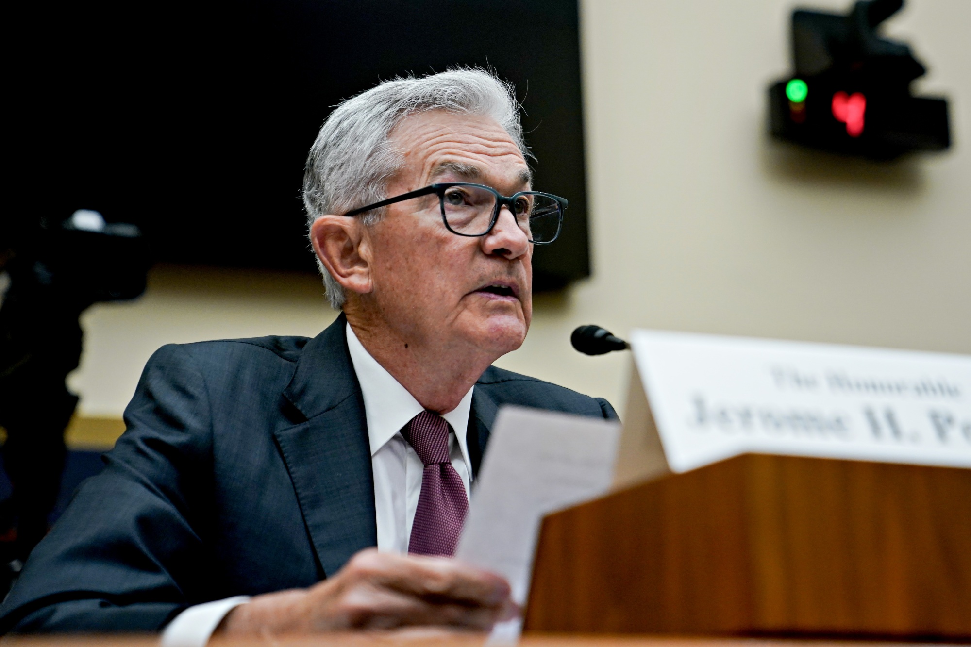美联储主席杰罗姆·鲍威尔在华盛顿周三参加众议院金融服务委员会听证会期间。鲍威尔表示,政策制定者预计利率需要上调,以将美国增长降至长期趋势以下,并遏制价格压力。