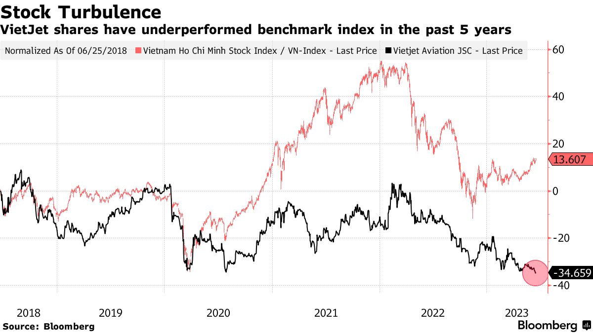 近来的飞行有些坎坷。在过去的五年里,维捷航空的股价下跌约35%,使陶氏的总股份价值在上周四降至近9亿美元。维捷航空已与波音公司和空中客车公司达成协议,分别在2022年和2021年重组飞机订单,此前越南政府在疫情期间禁止大部分航班,使当地航空公司面临破产风险。