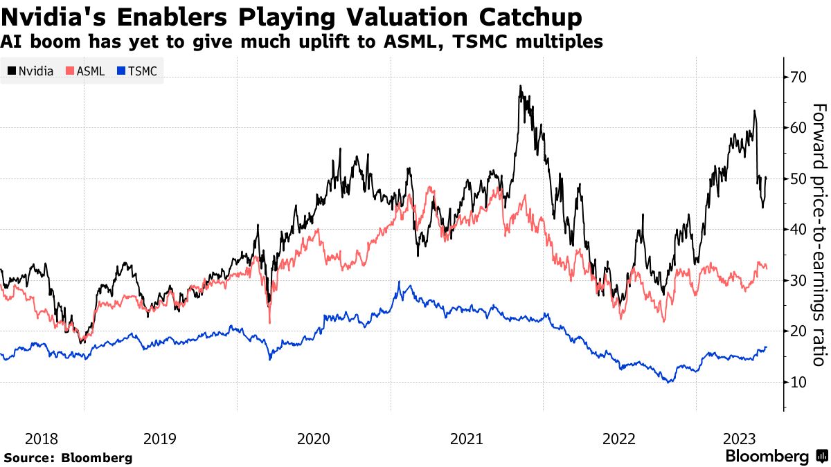 Nvidia(英伟达)的股价飙升未能带动台积电和阿斯麦尔等公司,人工智能热潮未能传染 - 彭博社