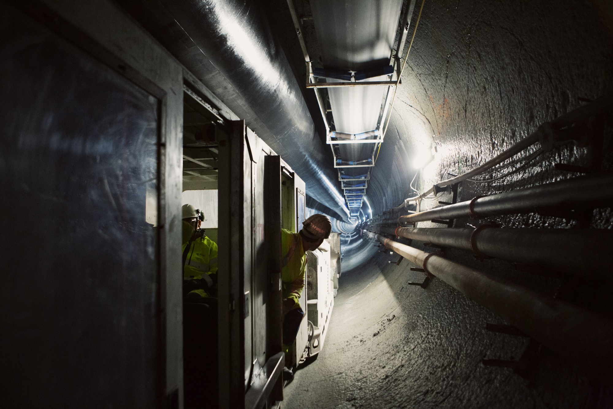 当看到隧道入口时,这一切都不明显,入口被一个变电站遮挡,偶尔会被旁边练习高尔夫球的球击中。在地下,通道直径为五米,非常平整,除了一些被混凝土修补的部分。隧道掘进机在瑞典相对较新,长期以来,一种本土发明——炸药——一直占据市场主导地位。
