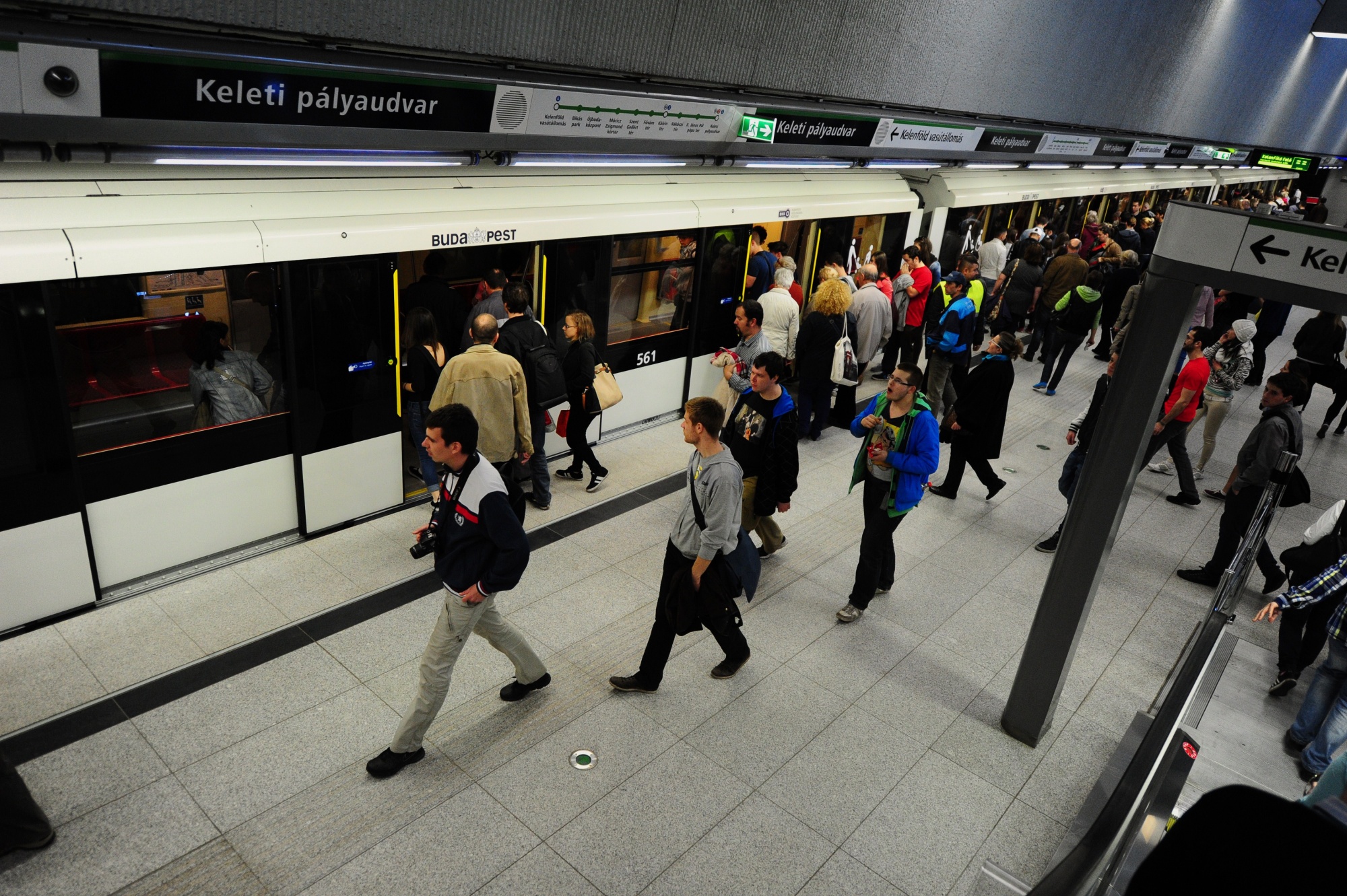 乘客们在匈牙利布达佩斯搭乘地铁列车。