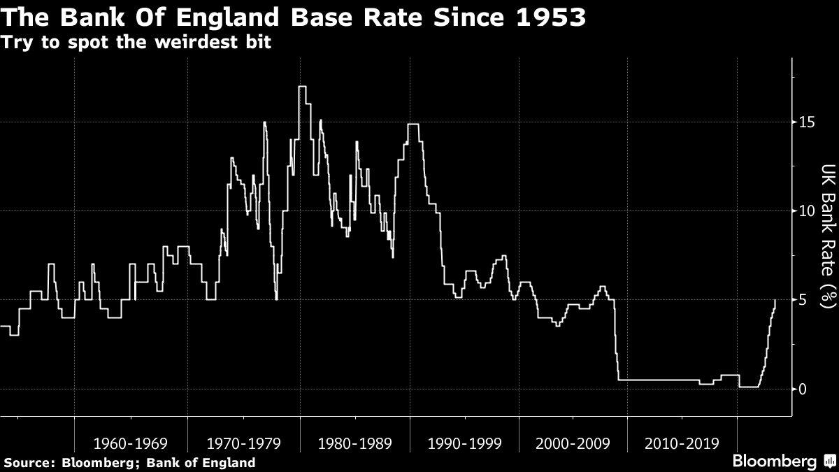 但你无法将过去15年描述为“正常”。在过去70年中,英国央行利率首次低于3%是在2008年。平均基准利率约为6%。