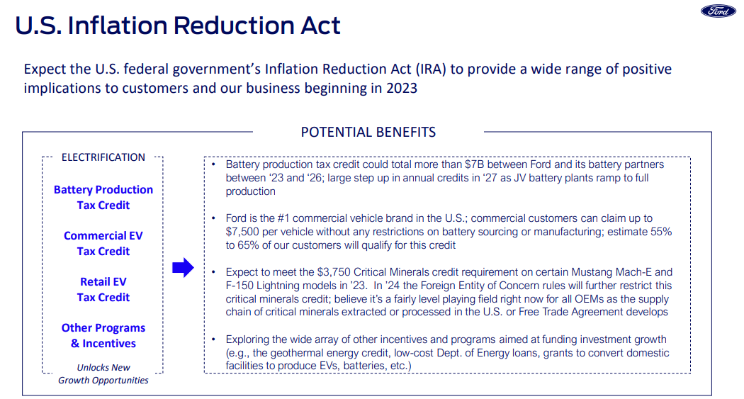 去年十月报告季度收益时,福特提到“低成本”能源部贷款是刚刚通过的通胀削减法案的许多潜在好处之一。