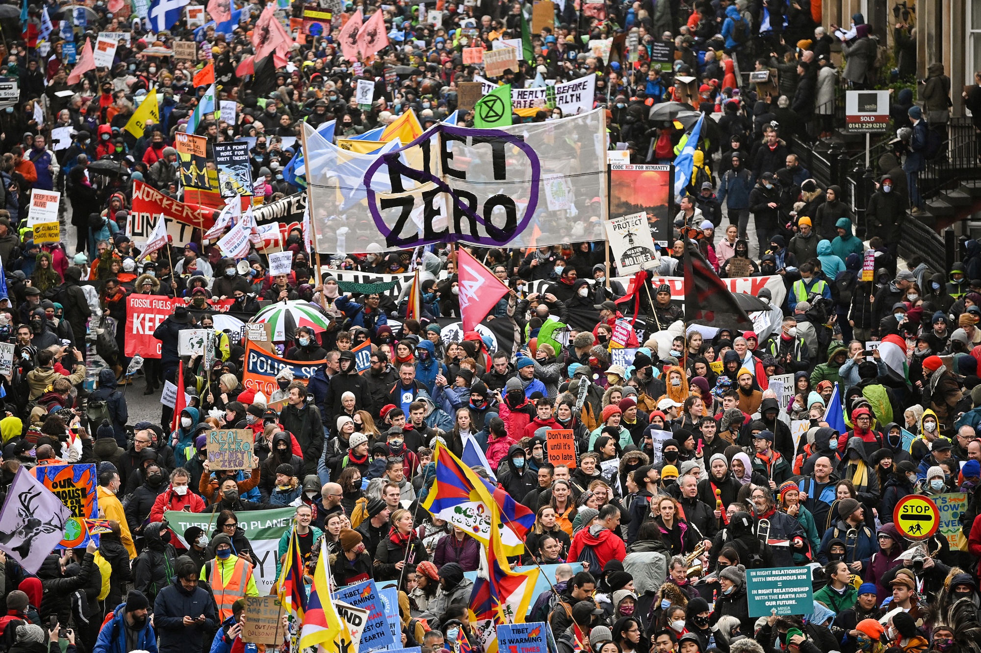 气候抗议者在2021年11月的全球气候正义行动日在苏格兰格拉斯哥举行的COP26气候峰会期间聚集。格拉斯哥净零金融联盟于当年早些时候成立。摄影师:Jeff J Mitchell/Getty Images Europe格拉斯哥净零金融联盟,简称GFANZ。该联盟在2021年11月表示,其数百家成员公司,资产总额约130万亿美元,致力于加速全球经济的脱碳。