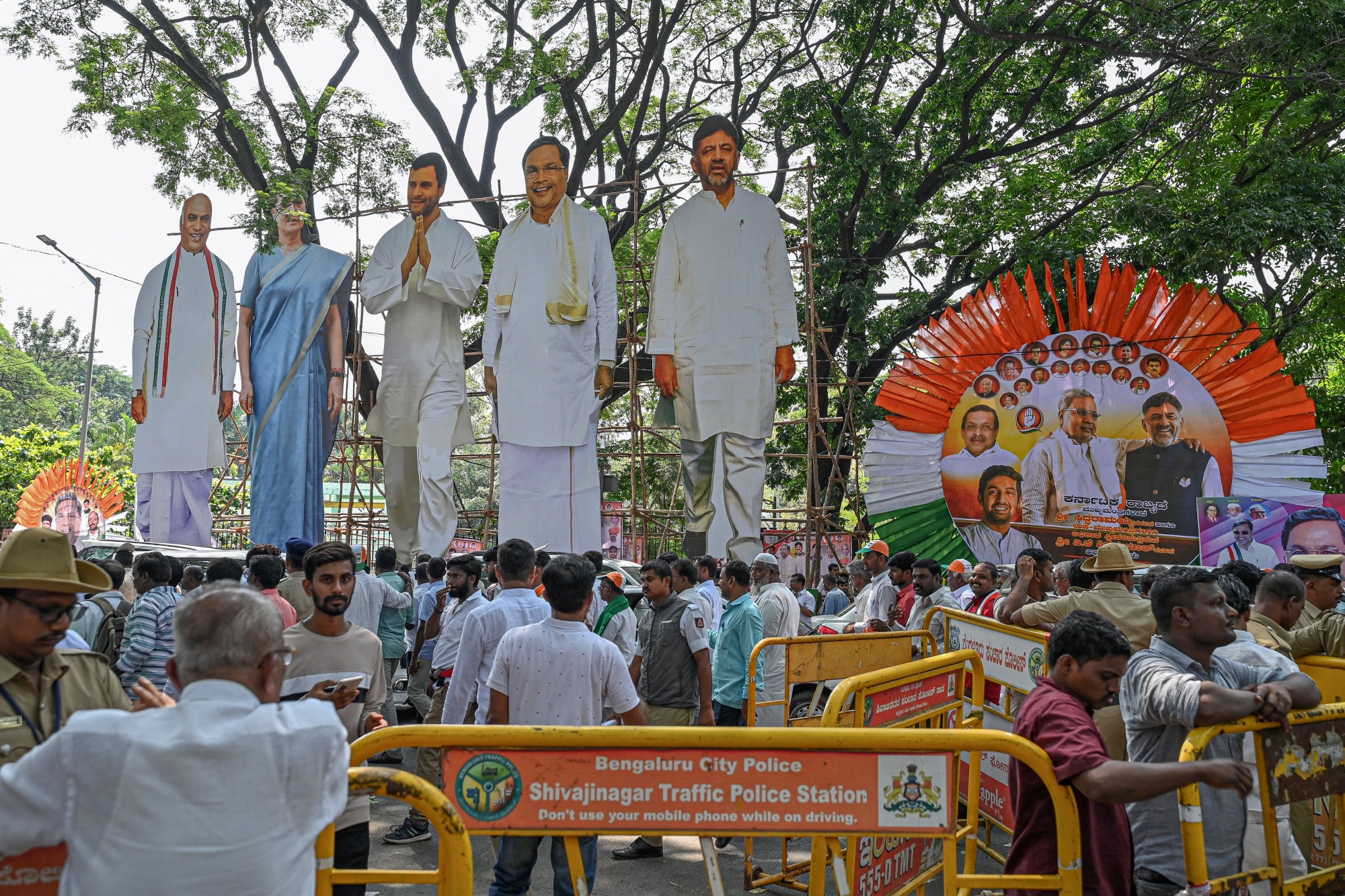 国会领导人在孟买宣誓就职场地外的剪影,5月20日。摄影师:Manjunath Kiran/AFP/Getty Images“国大党在下次选举中会表现得很好。我认为它会让人们感到惊讶,” 甘地 说 本月早些时候在华盛顿国家新闻俱乐部说。“如果你只是做数学计算,一个团结的反对派将单独击败人民党。”