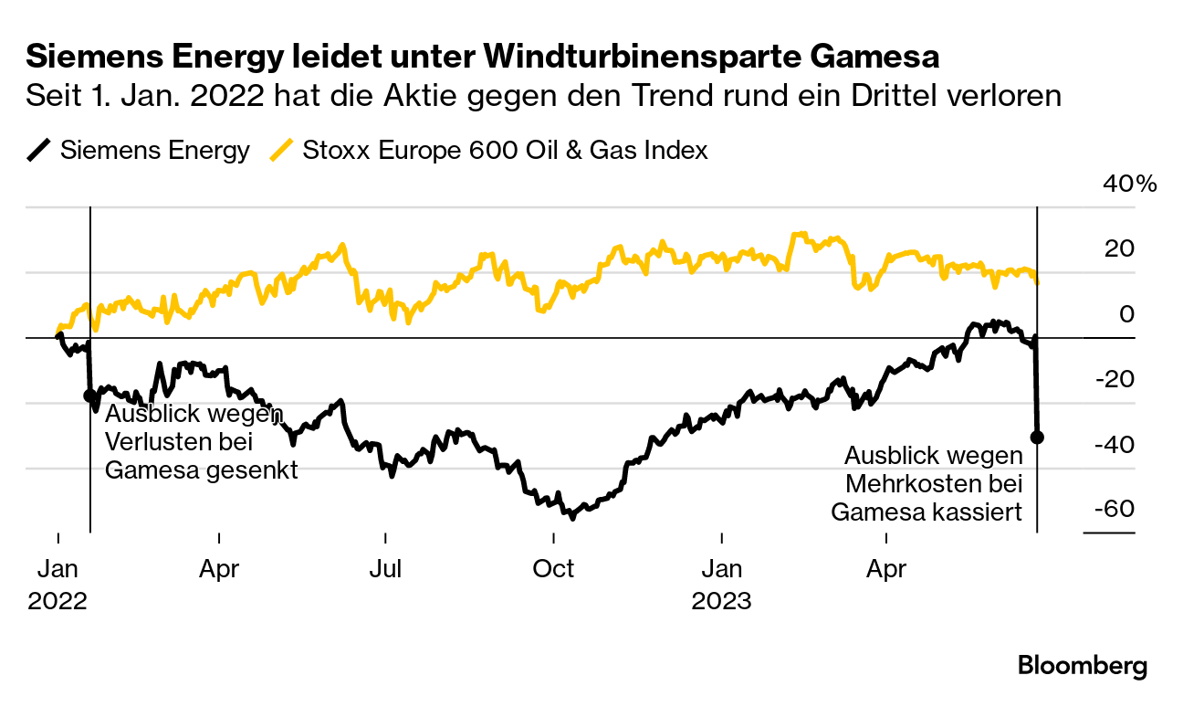 首席执行官克里斯蒂安·布鲁赫称最新发现“令人痛心”,谁又能反驳他呢。人们想知道这些厄运何时才会结束。Gamesa在五年内换了三任首席执行官,但破产、倒霉和意外事件的连环剧并未停止。西门子能源希望通过完全收购获得更好的控制权,但目前尚未明显起到作用。问题也慢慢传到了母公司西门子,后者本来计划很快出售其对西门子能源的剩余股份。以目前的股价来看,情况并不乐观。