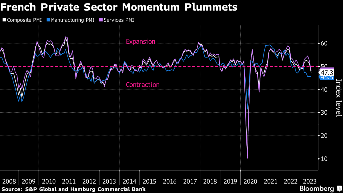 2023年6月20日,法国总统埃马纽埃尔·马克龙在巴黎爱丽舍宫迎接意大利总理乔尔贾·梅洛尼。摄影师:Christian Liewig/Corbis/Getty Images法国如何保持增长势头?财政部长布鲁诺·勒梅尔在接受彭博电视采访中分享了保持复苏的秘诀。