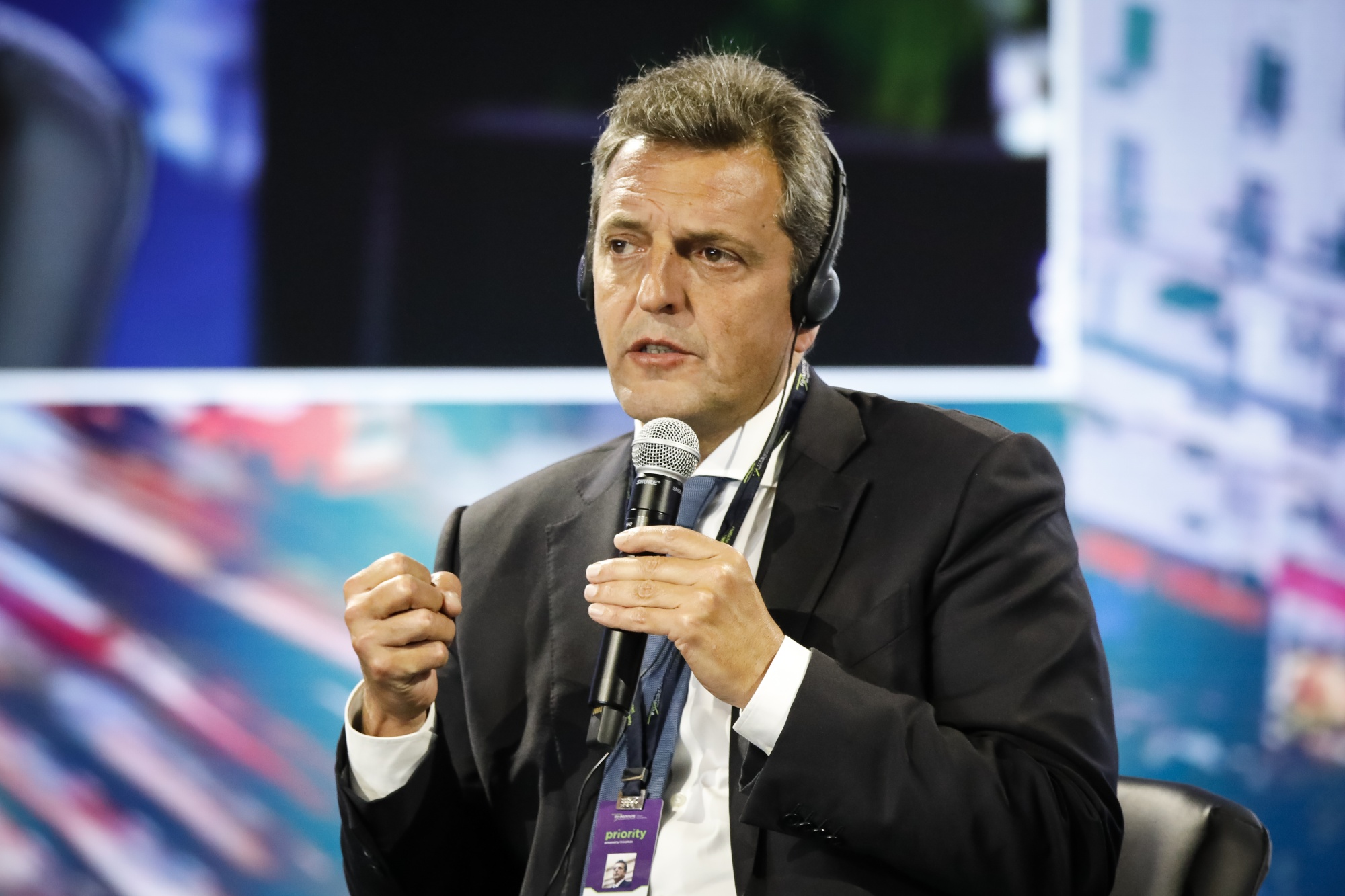 阿根廷经济部长塞尔吉奥·马萨在美国佛罗里达州迈阿密举行的未来投资倡议(FII)研讨会上发言,时间为2023年3月30日星期四。摄影师:Marco Bello/彭博社政府在10月22日的大选中面临艰难的连任竞选,而此时正值深刻的经济危机。通货膨胀率每年超过114%,预计该国将在今年晚些时候进入衰退,正值开始偿还440亿美元国际货币基金组织贷款计划。