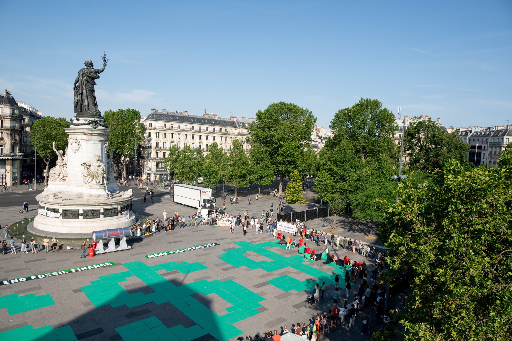 气候活动人士在巴黎全球气候峰会期间在共和广场举行抗议活动。与会者聚集讨论全球借贷架构的改革,考虑到俄罗斯对乌克兰的战争和全球变暖等灾难,以及这两者对脆弱国家的影响。